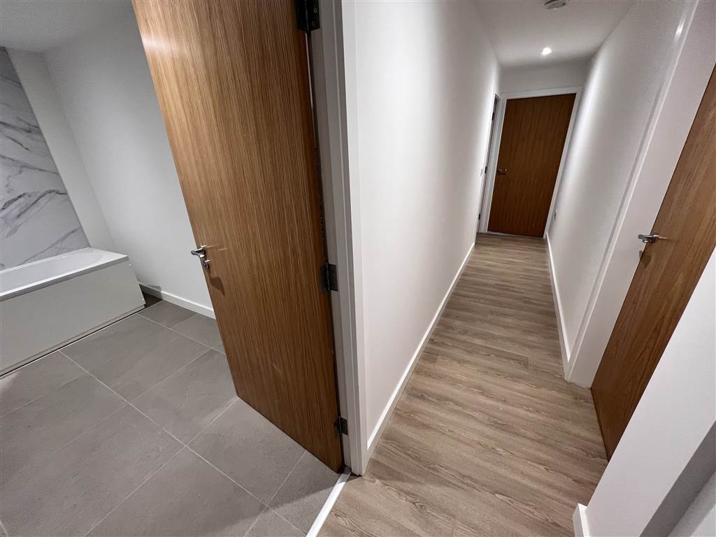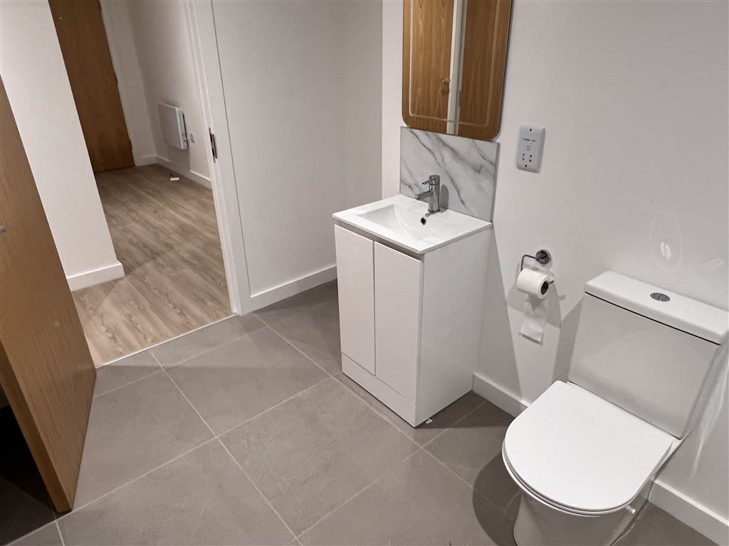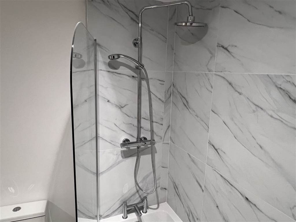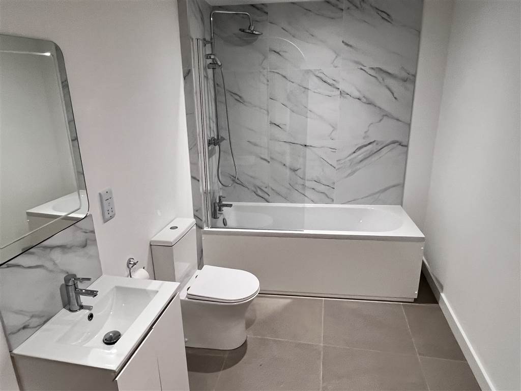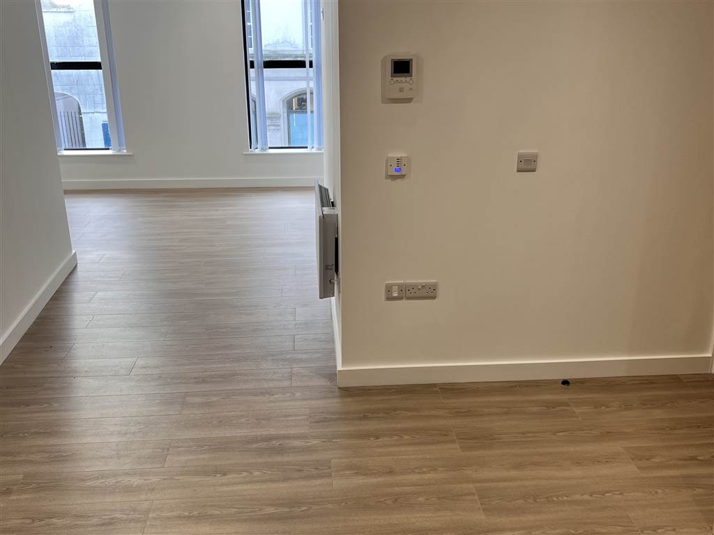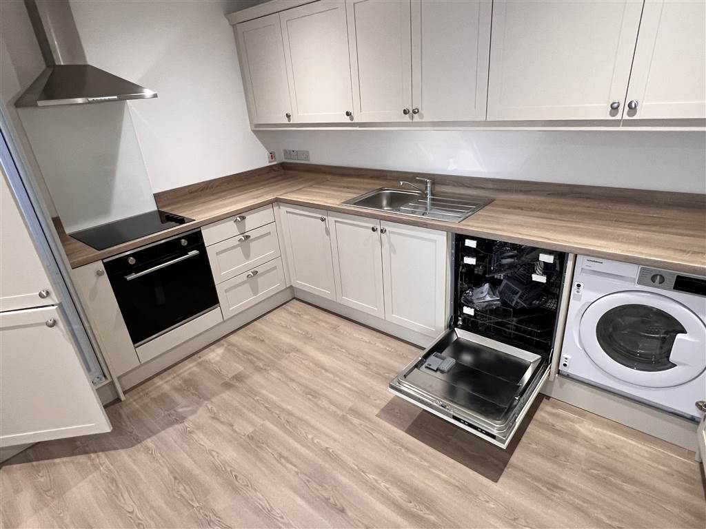 Brand new one bed apartment for let above retail overlooking the High Street in Newtownards Town Centre. Fitted out to the highest standards with a deluxe shaker style kitchen and intergrated appliances and LVT flooring. The bathroom is in white suite with shower in bath and glass side screen and ceramic tiled floor. Bedroom and communal corridor are carpeted throughout. Entrance door has a video intercom linked to a wall mounted video screen in the kitchen for security purposes. This is one of five new apartments being released in Newtownards town centre.