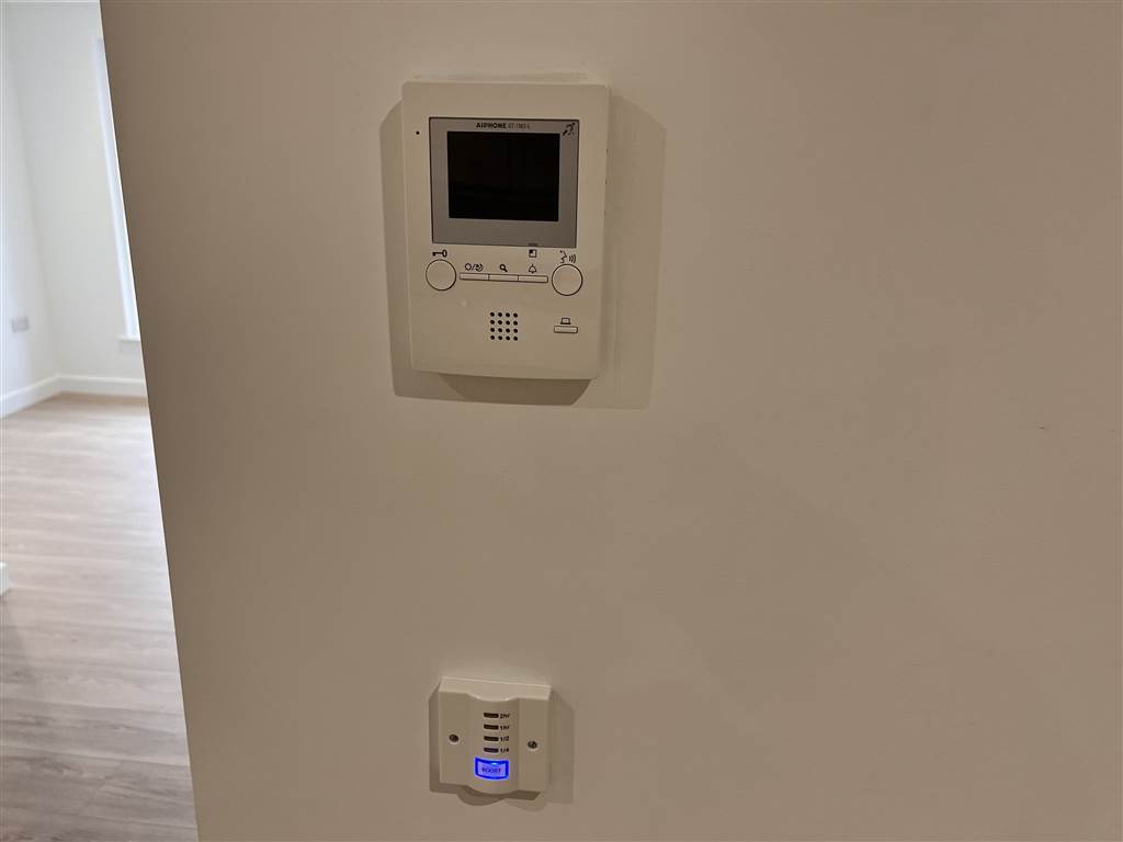 Entrance door is provided witha video intercom linked to control screen in the kitchen