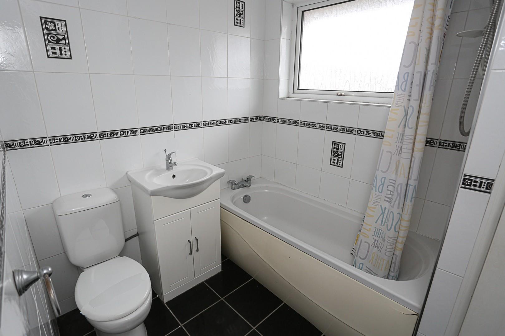 Wash hand basin, low flush WC, shower cubicle, plumbing for washing machine, gas boiler, pvc door to rear garden.