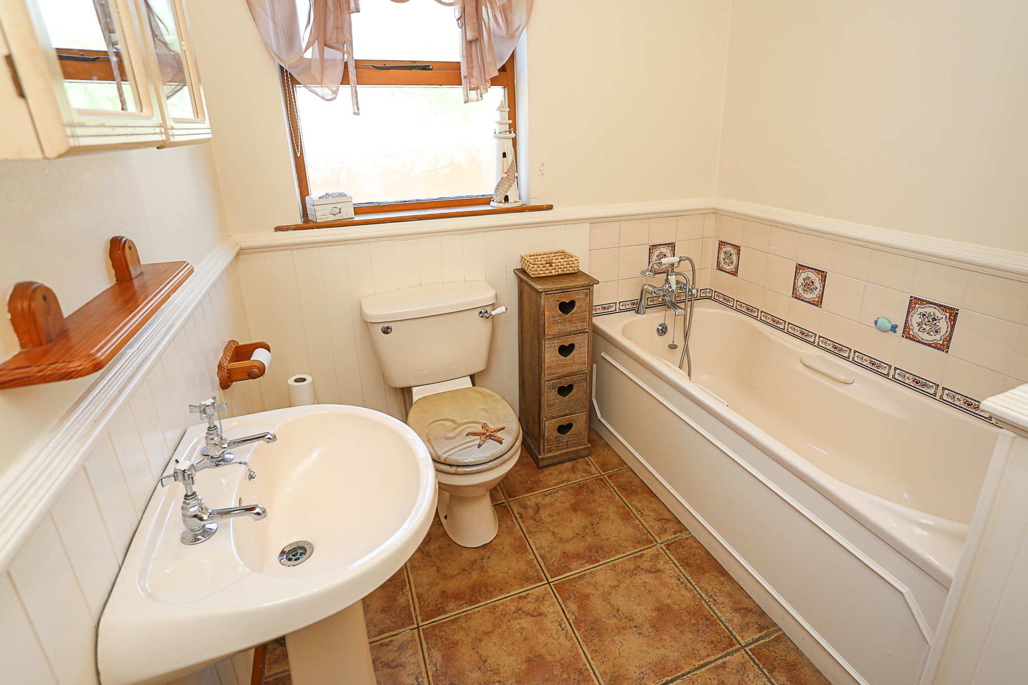 Internally, the property comprises a welcoming reception room complete with a cosy wood burning stove leading through to an adjoining dining room. The kitchen is fitted with and excellent range of units and gas stove. There are 3 good sized bedrooms and the family bathroom is fitted with a sylish white suite including a bath while the master bedroom benefits from an en suite for added convenience.