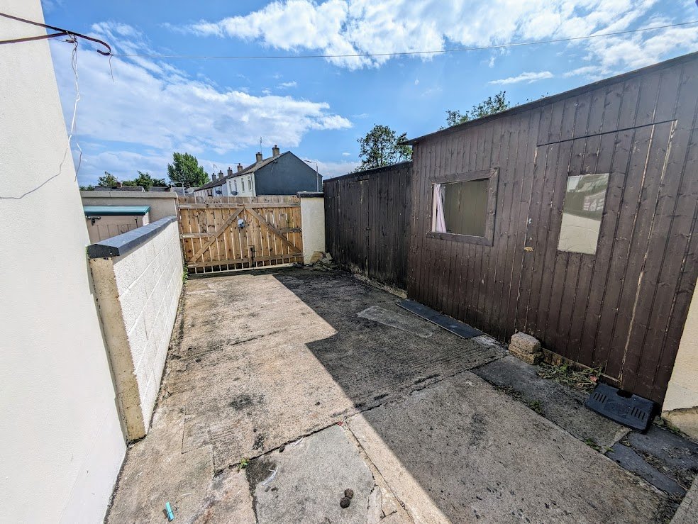 To front in paved patio area and rear in concrete patio area, garden shed, garden store.