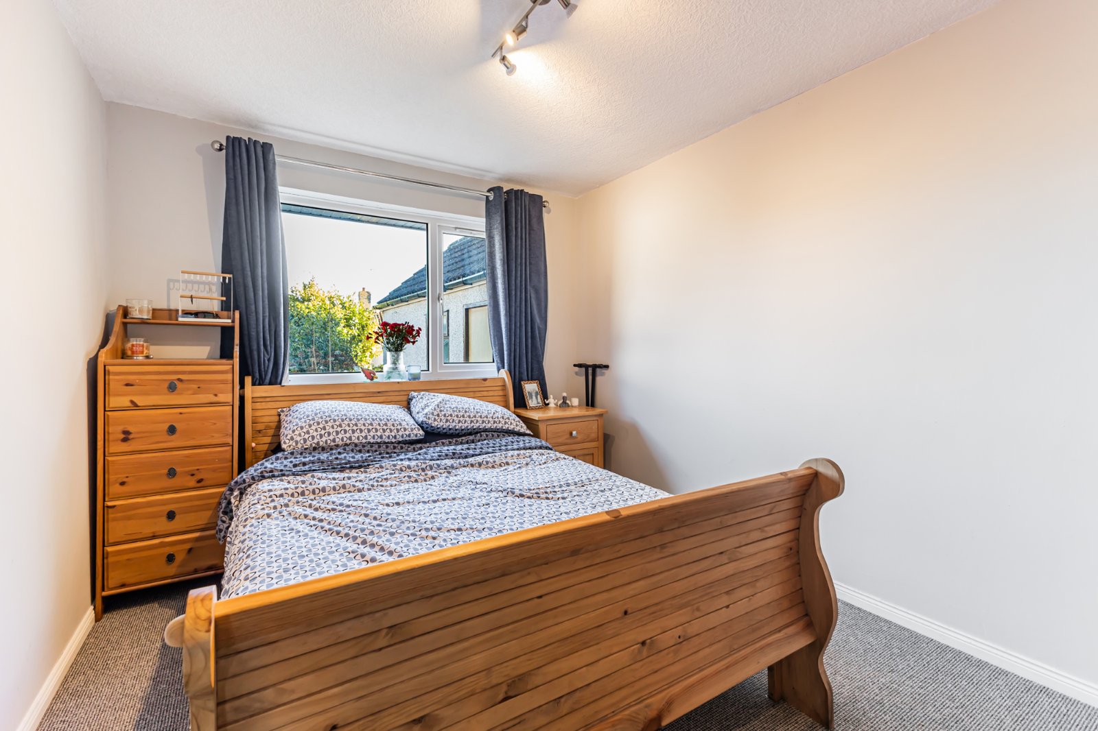 Externally, the property is approached by ample off-street parking. The front garden is laid in lawns with mature shrubs, while the rear garden is enclosed and includes a lawned area and paved patio space. Additional features include PVC fascia, soffits and guttering, full double glazing, and gas-fired central heating.
