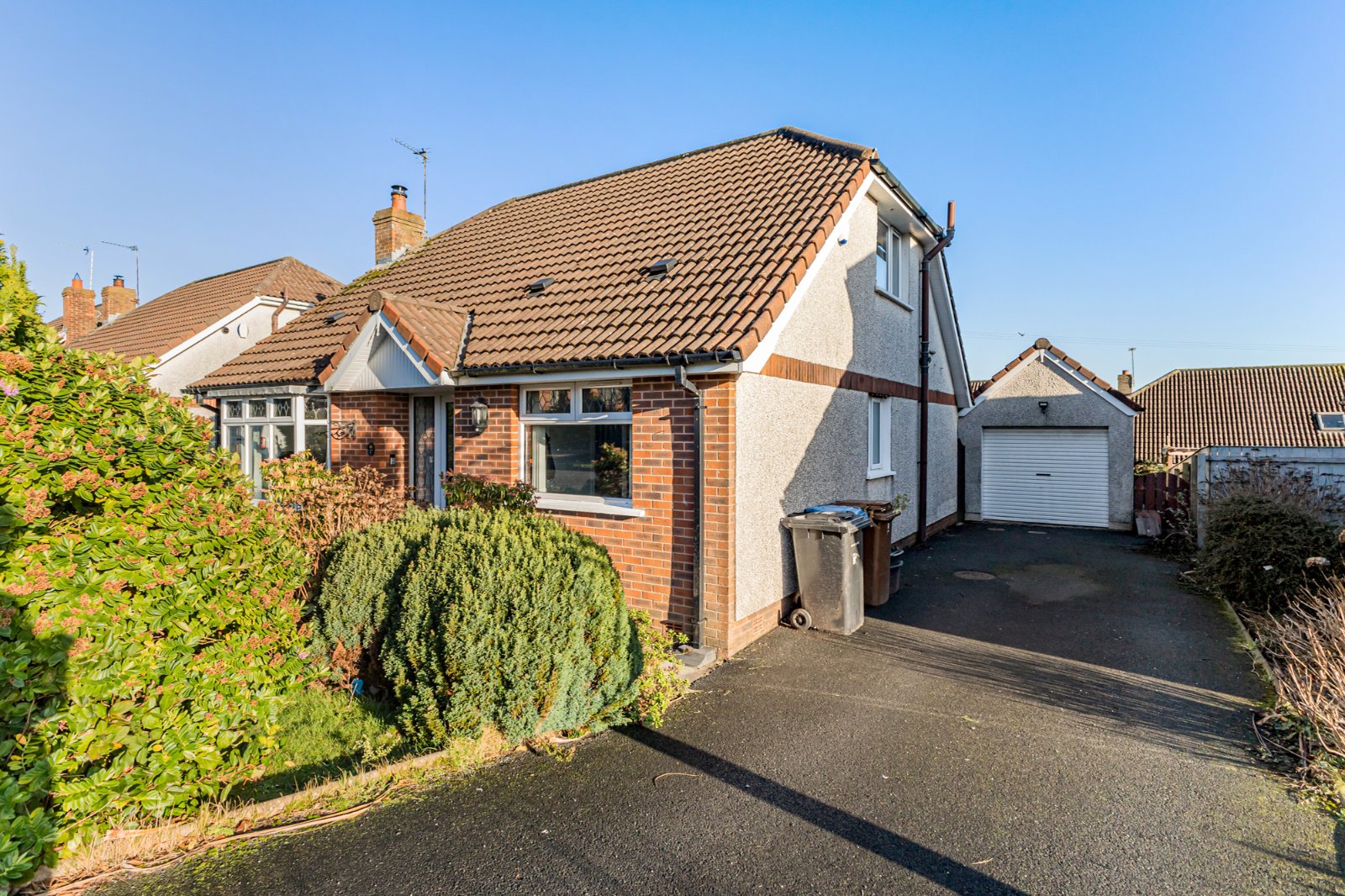 This chalet-style bungalow offers flexible and adaptable accommodation, well suited to a range of purchasers including families, downsizers, or those seeking ground-floor living with additional first-floor space.
