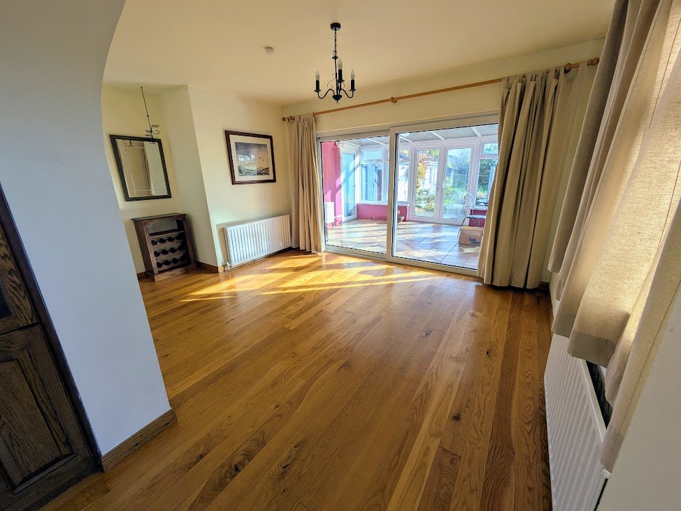 Hard wood floor, double glazed sliding patio door to: