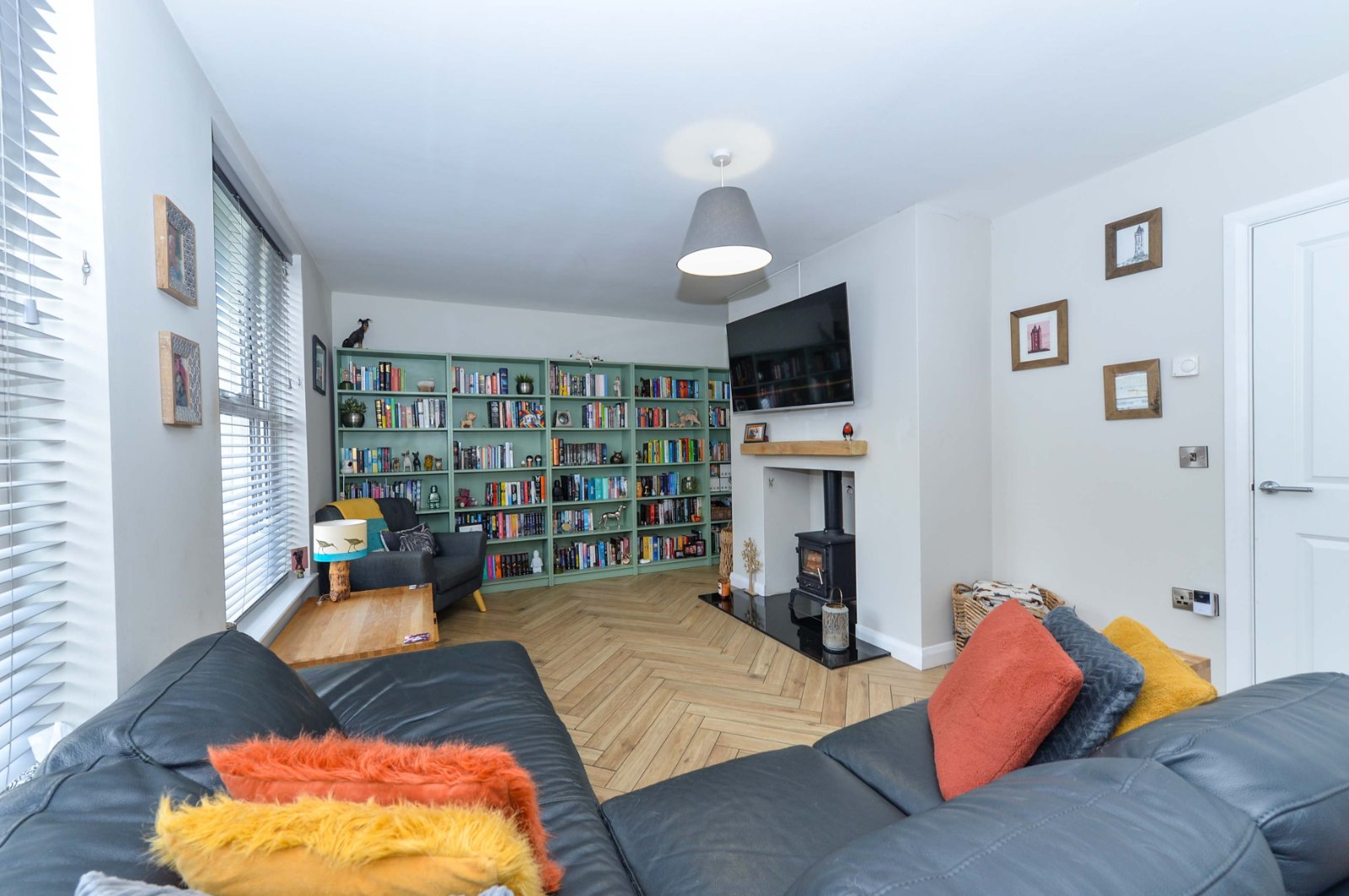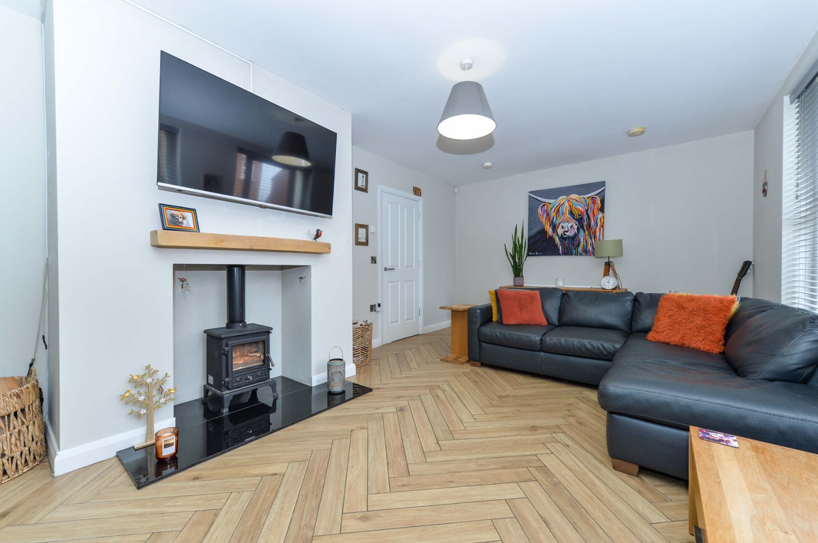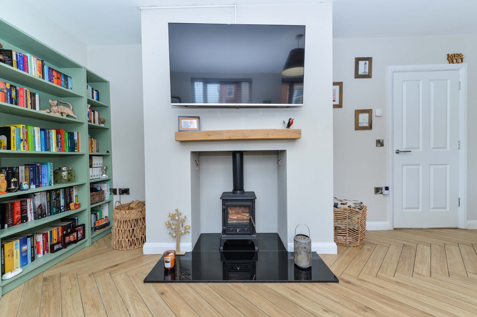 Tiled Herringbone floor. Feature wood burning stove with granite hearth.