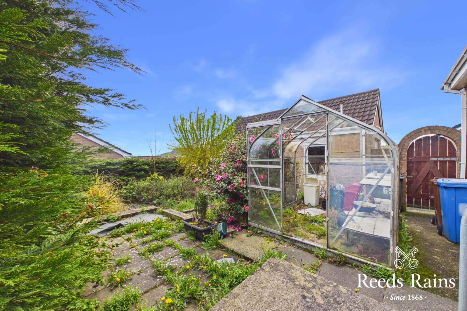 Front garden laid in lawns and shrubs with tarmac driveway leading to detached garage. Paved rear garden with stone beds and a range of shrubs. PVC oil tank.