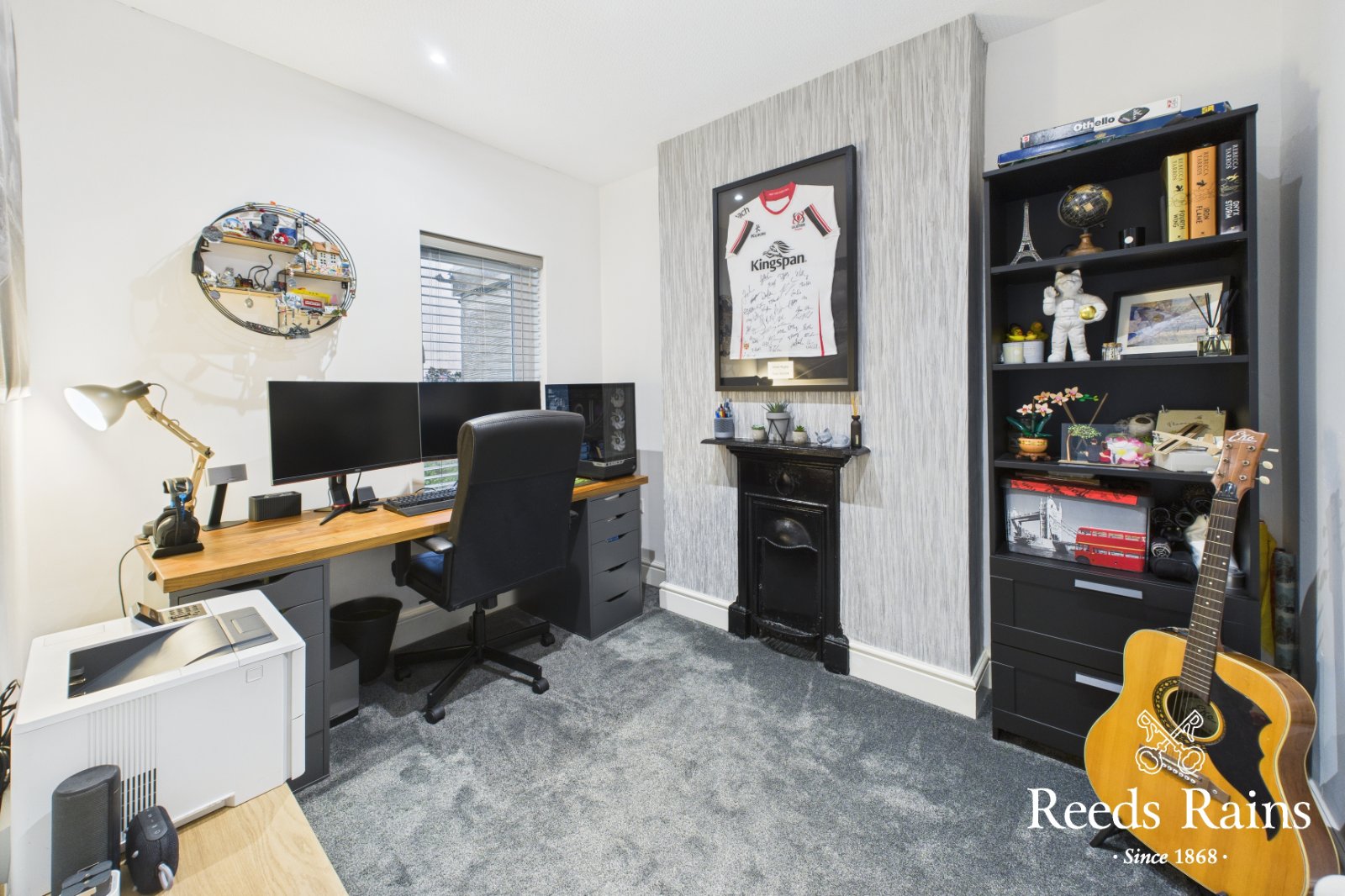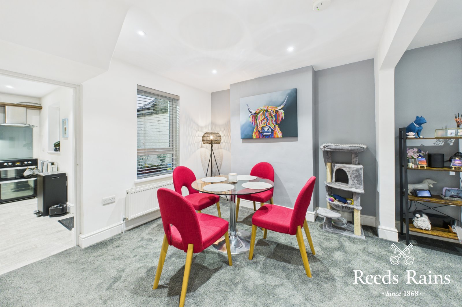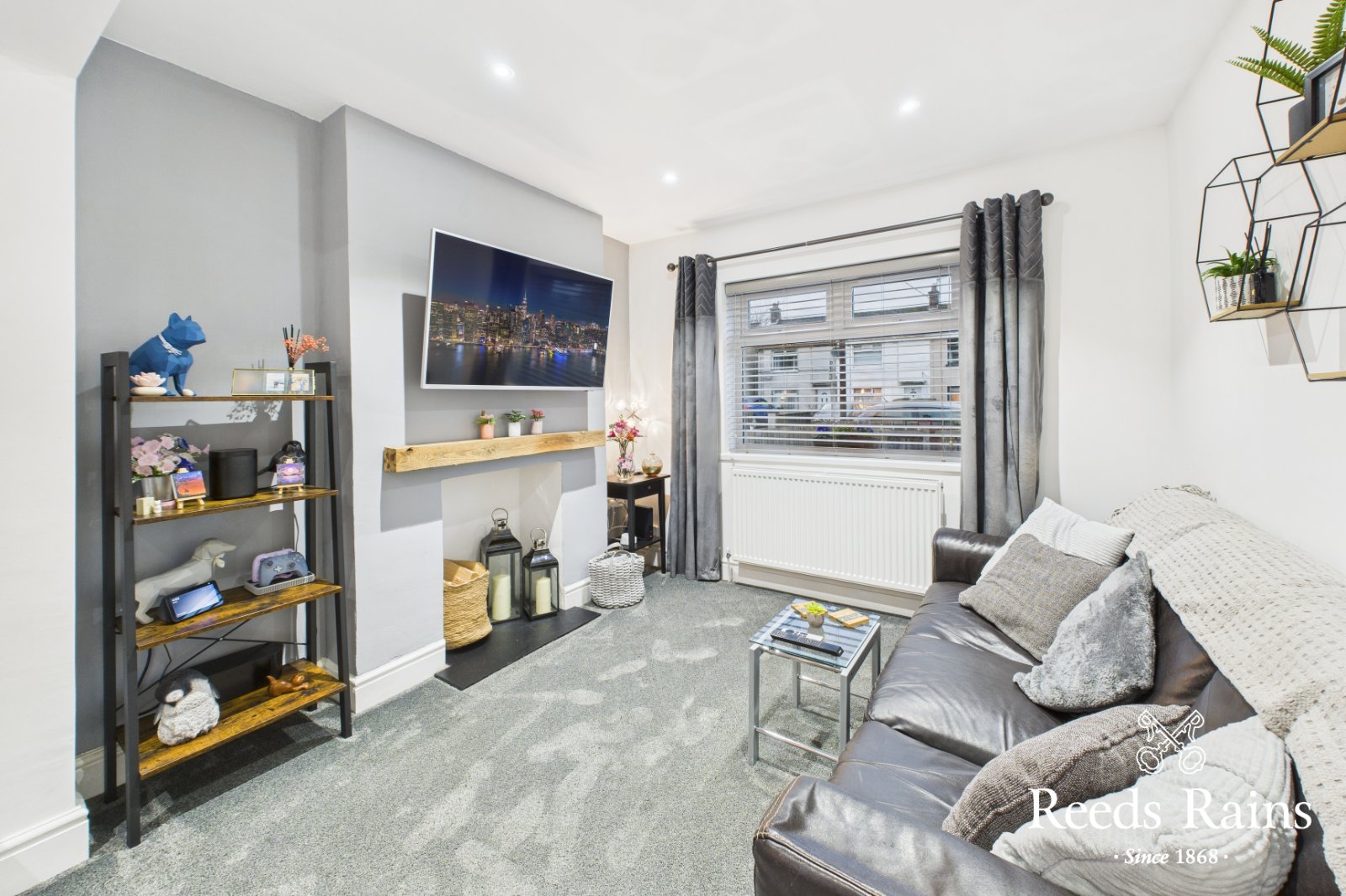 Recess spotlights, storage cupboard and original cast iron fireplace. Cat6 wired.