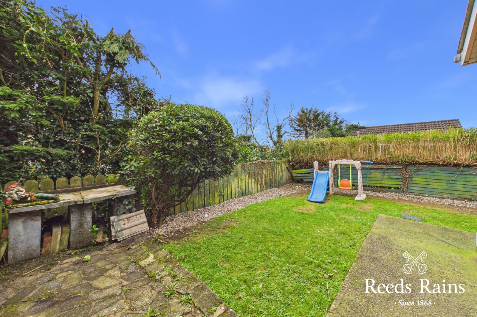 Front consisting of concrete drive and garden laid in lawns with shrubs. Enclosed rear garden laid in lawns with shrubs and trees.
