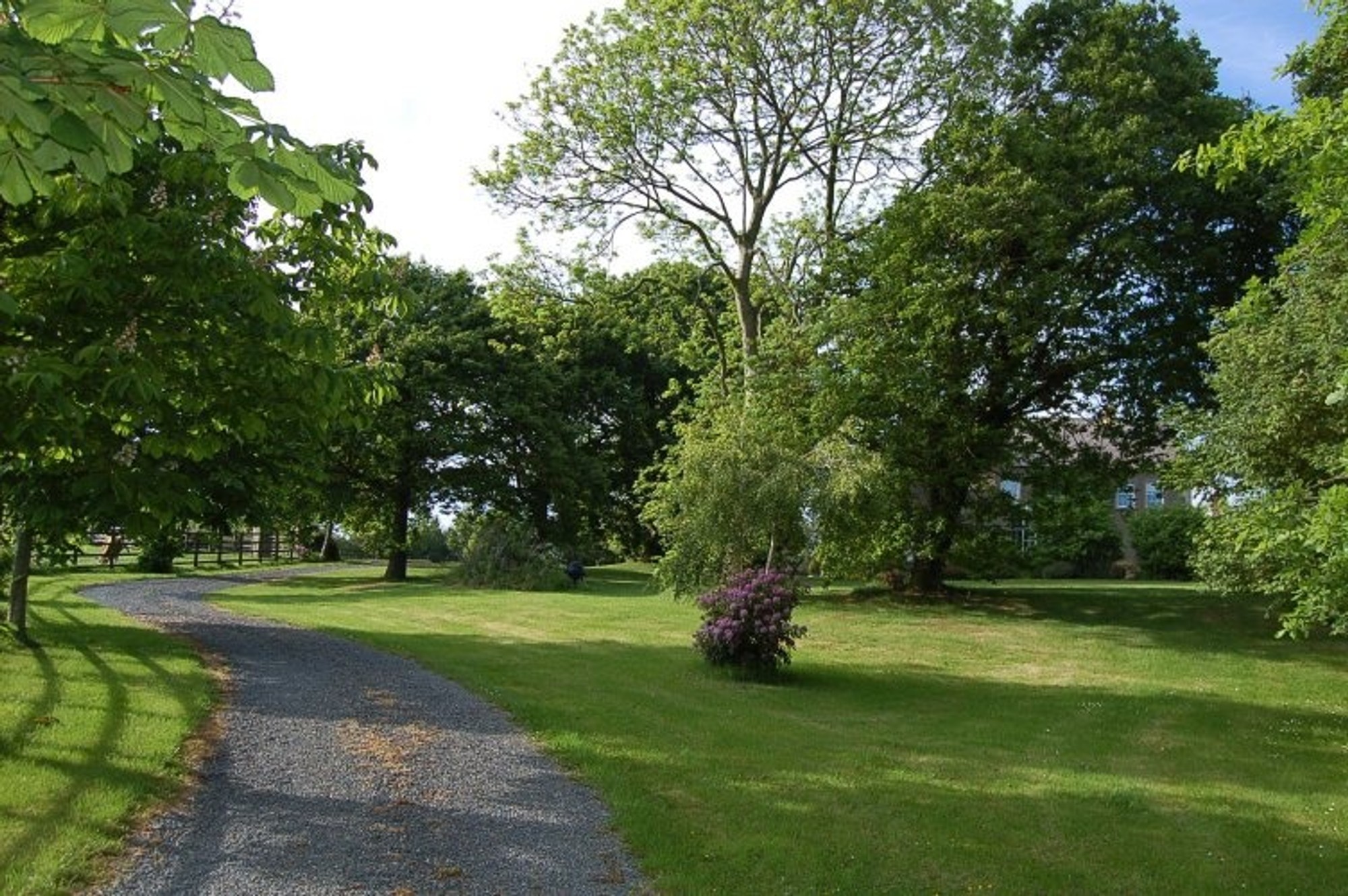 - Gardens in lawns, shrub beds and mature trees with Rhododendron walk around the lake