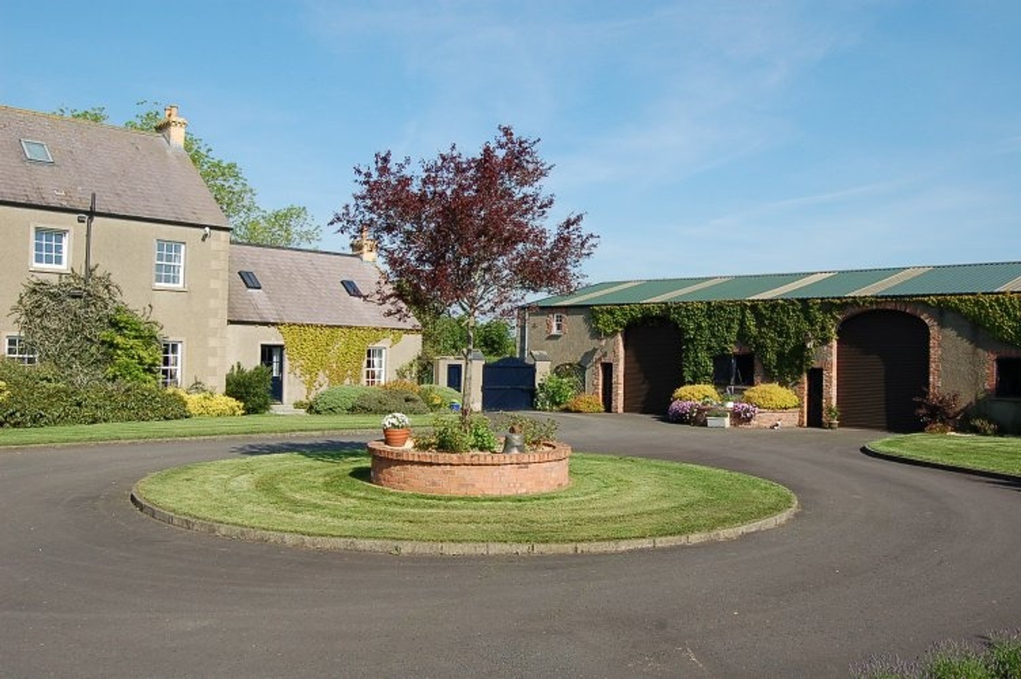 - Property set well back from the road, front avenue with wide grass verges and wooded areas with a stone faced bridge leading to gravel turning circle in front of house