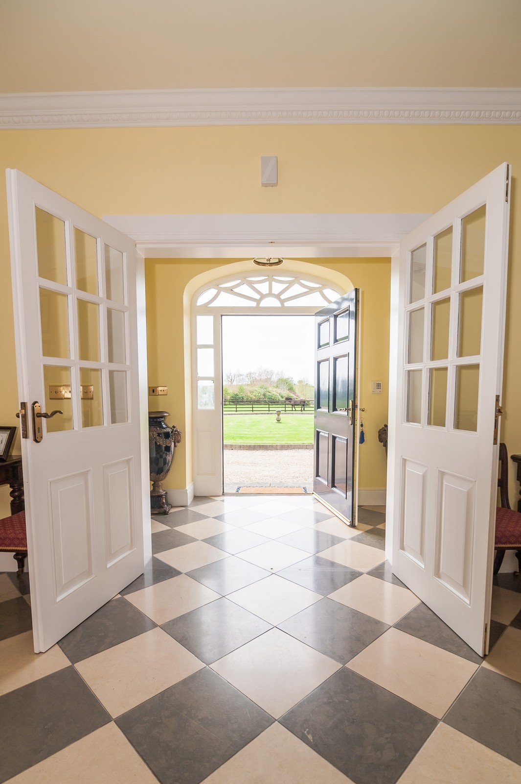 - Entrance porch with Georgian fanlight over front door