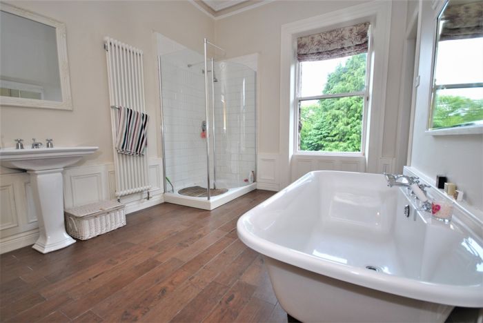A beautiful period property built in Scrabo Stone with separate coach house and courtyard on a fabulous mature site of around 3/4 acre. Westmount House dates back to the start of the 1900’s and was reputedly built for the owner of a local paper mill. It is a grand property and very well proportioned on a scale that you would expect for this type of house. The period features are still in tact with some impressive, cornicing, ceiling roses and corbels along with high ceilings, moulded skirtings and door frames and panelled doors. It was a different era but Westmount would have had live in staff and and is complete with butlers pantry and service bell box.