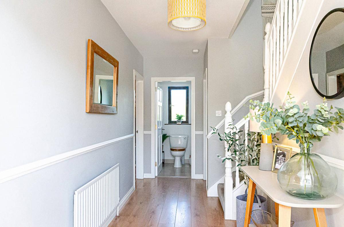 This spacious family home in Ballygowan has everything you need and more. It boasts four generously-sized bedrooms, modern bathroom and en suite. There is also a handy utility room and a convenient downstairs W.C. The inviting entrance hall welcomes you with its warm timber laminate flooring and elegant staircase that really sets the tone for this property. From the bright, airy living room to the dining area ideal for gathering with family or friends, plus the snug/ TV room, this home truly offers comfort and style.