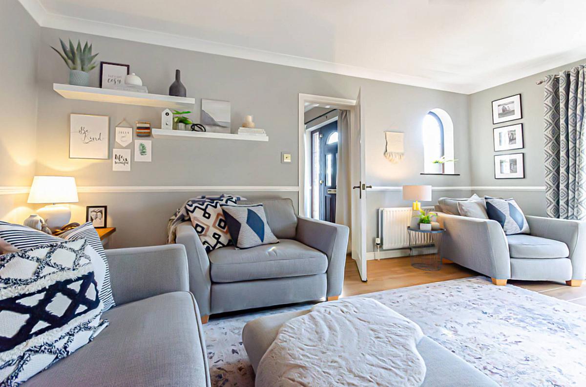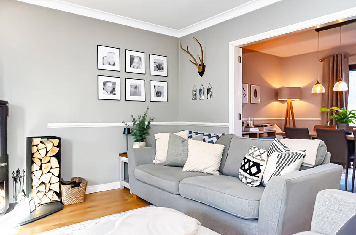 Dado rail, timber laminate floor and French doors to garden