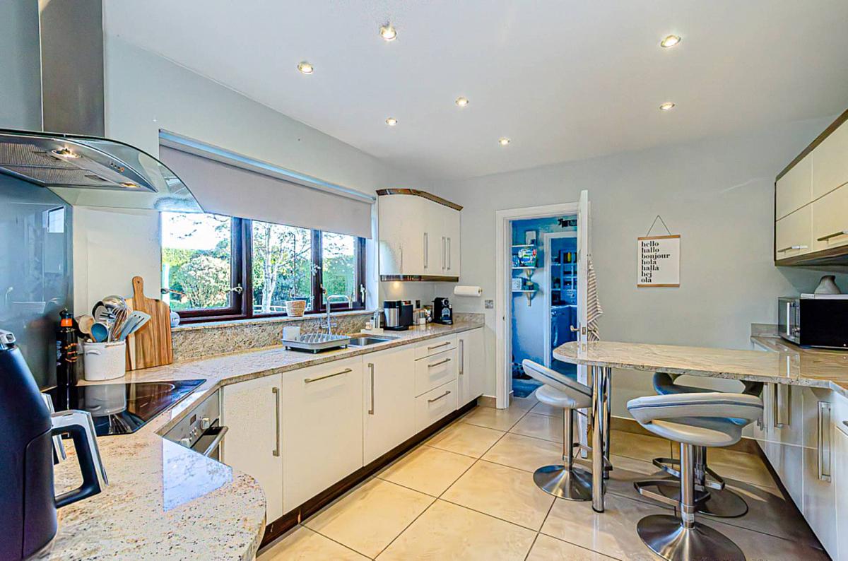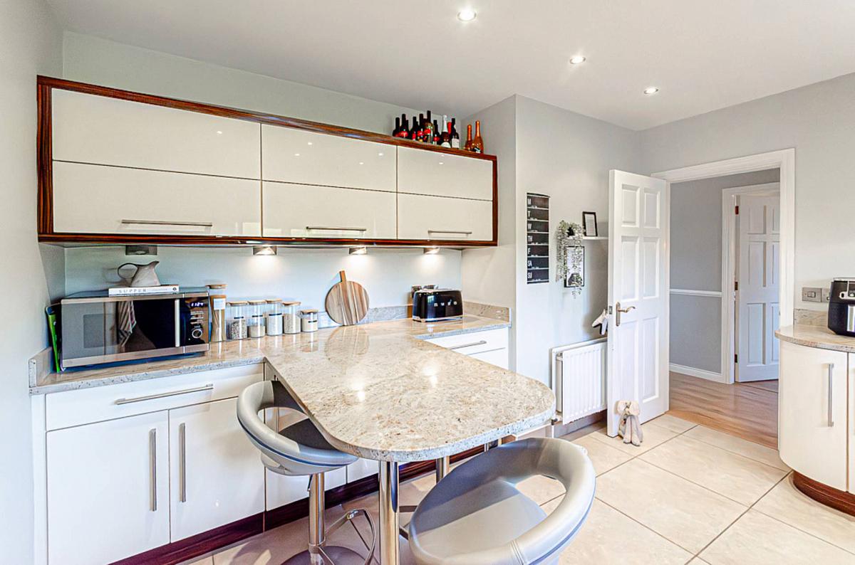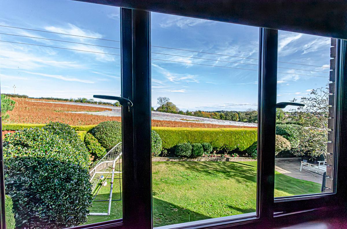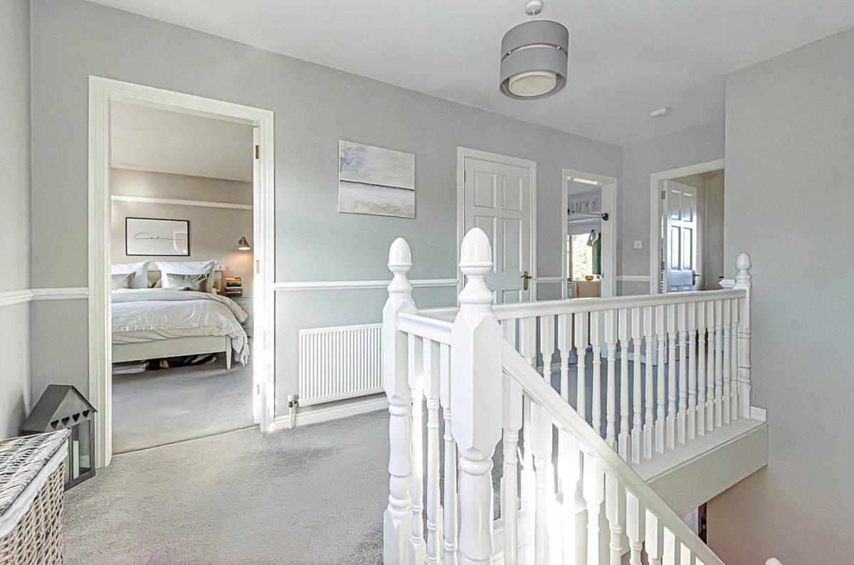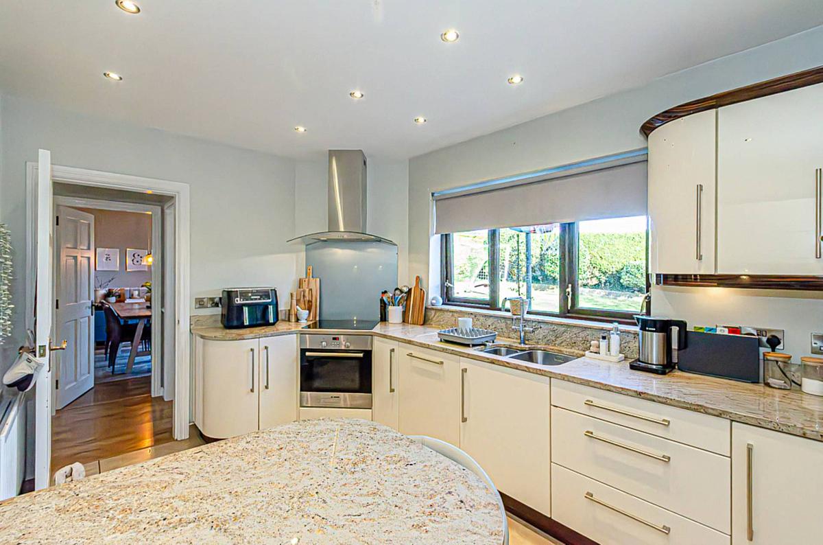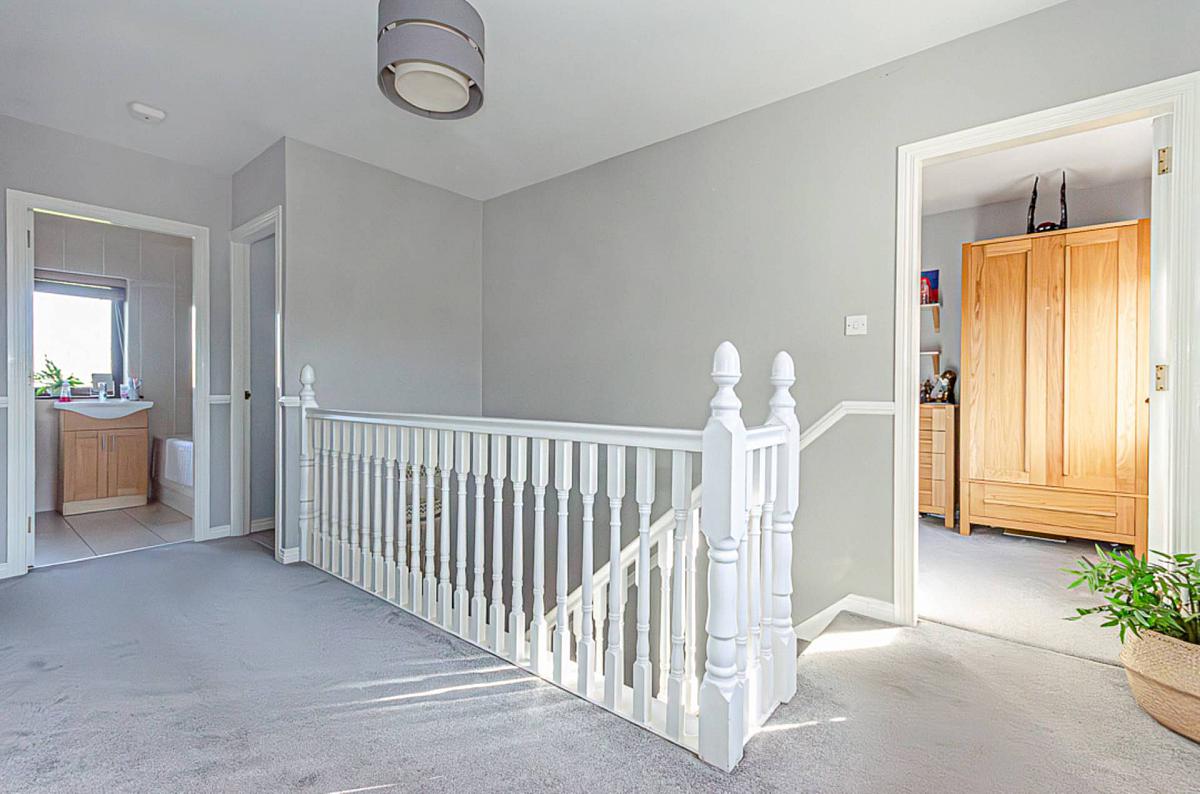 The smart kitchen features stone worktops, a Peninsula unit and integrated appliances and looks out over the rear the garden. The expansive outdoor space is well-maintained and perfect for summer barbecues or simply soaking up a bit of fresh air - all while enjoying the open aspect over fields to the rear. There is also an attached garage ideal for parking or additional storage space.
