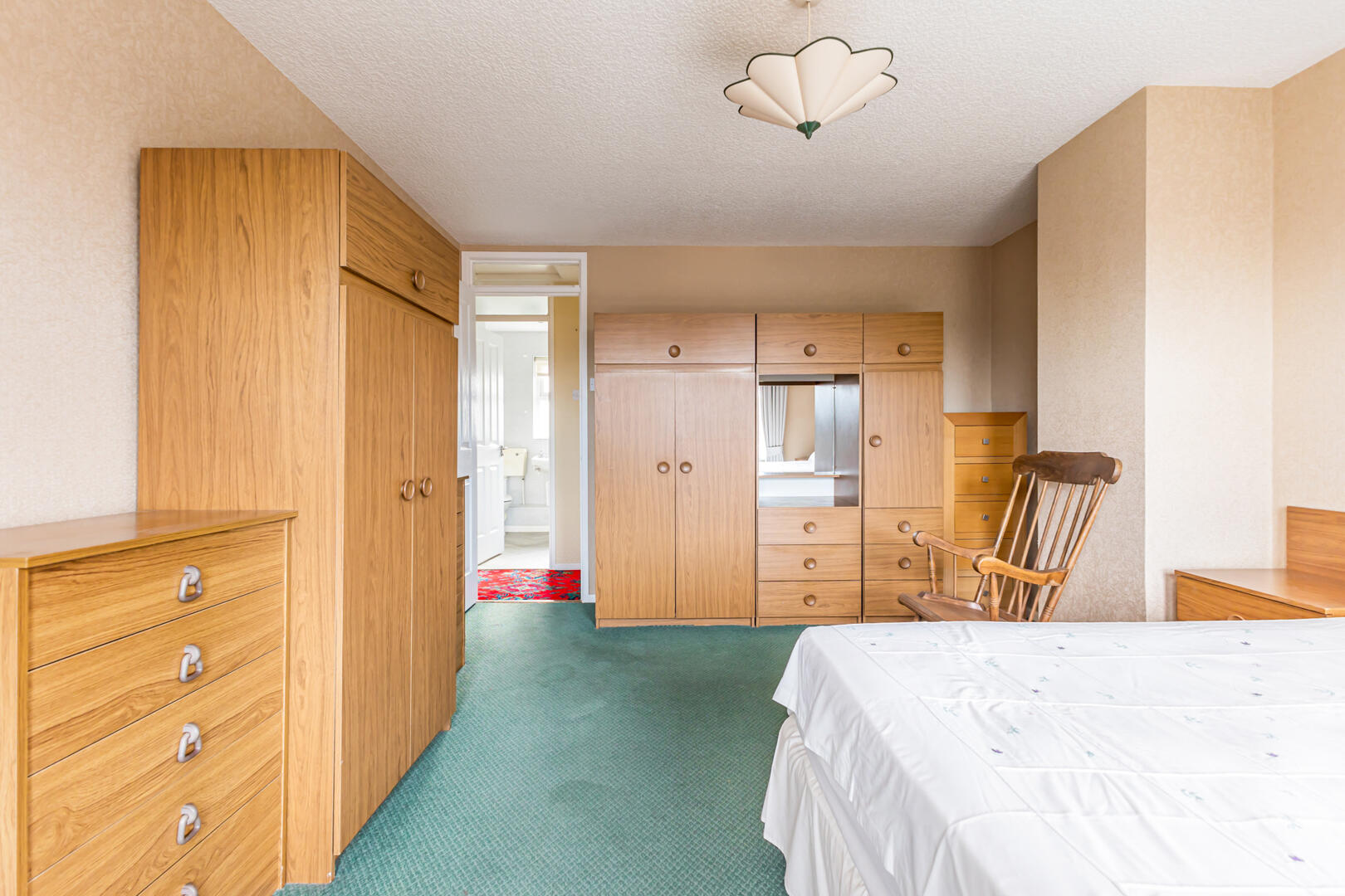 Excellent-sized double bedroom with outlook to the front, carpet flooring, and built-in wardrobe offering hanging and shelving space