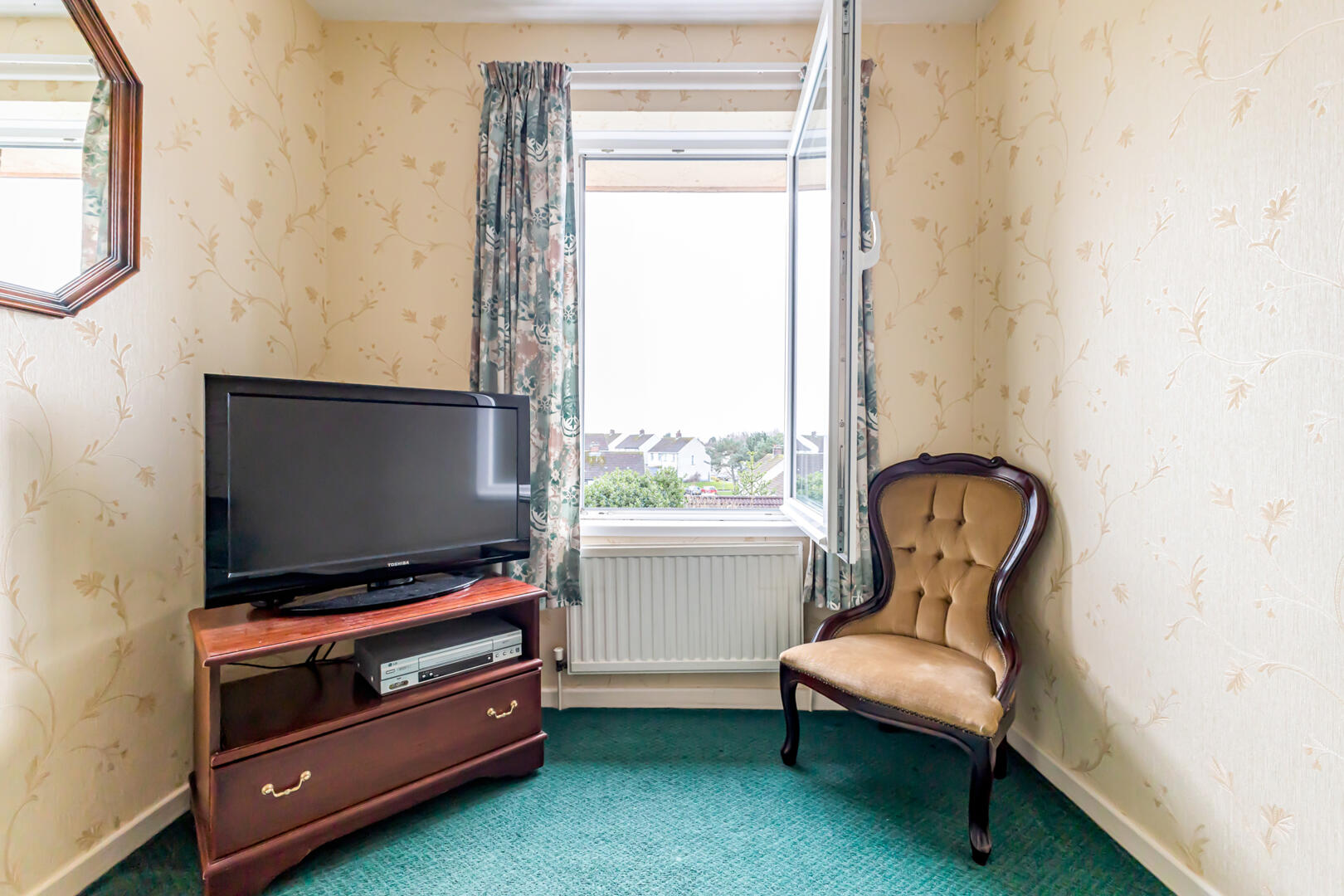Good-sized bedroom with outlook to the rear garden and carpet flooring