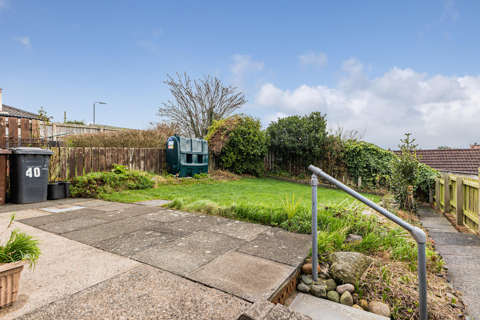 Generous fully enclosed rear garden, ideal for families or outdoor entertaining. Features mature hedges, trees, and shrubs, lawn area and paved patio. Includes oil-fired boiler and tank, outside lighting, and water tap
