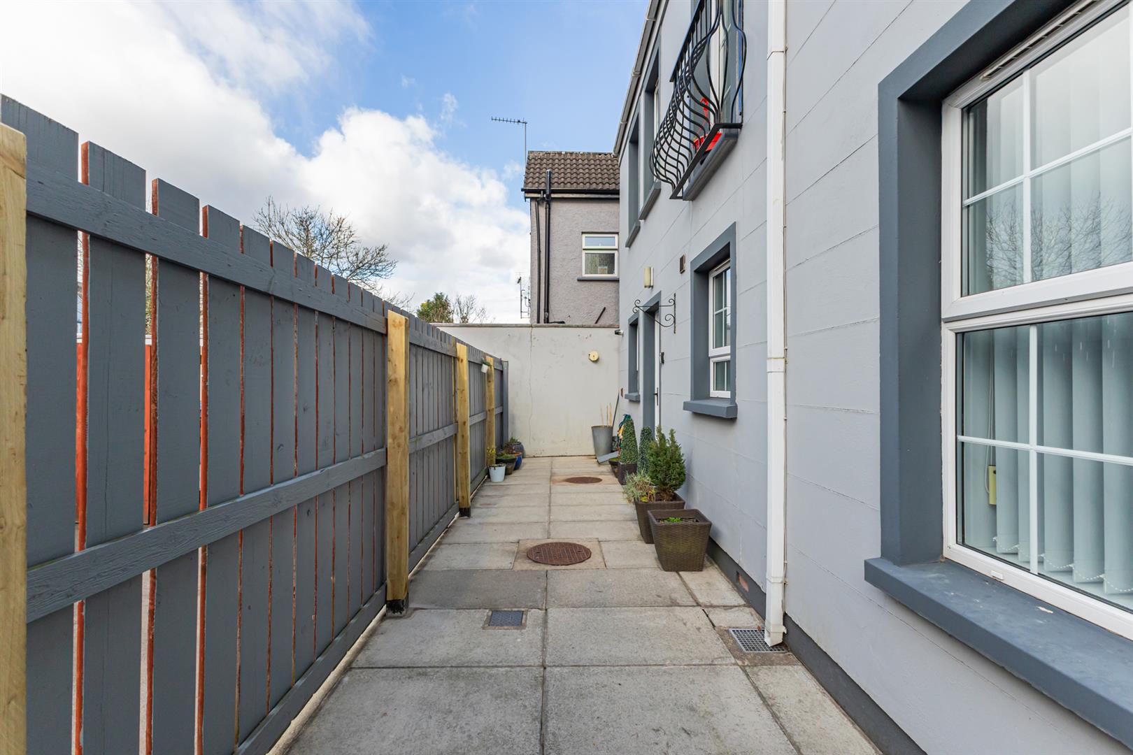 Fully enclosed rear garden with paved patio area, outside water, outside light, parking, uPVC guttering and fascia
