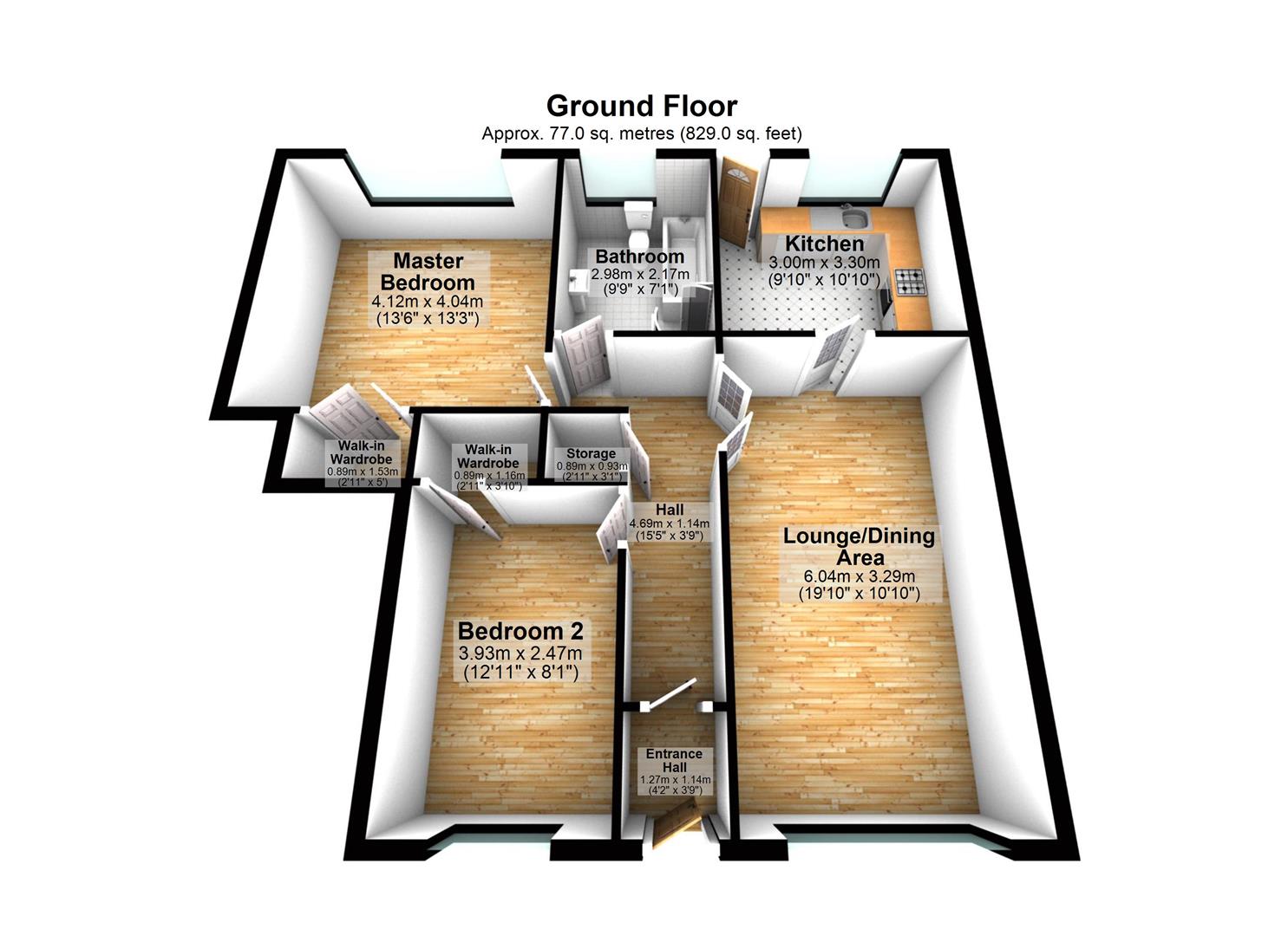 Accommodation in brief comprises of welcoming entrance hall, spacious living room with dining space, fully fitted kitchen with ample dining space, two well-proportioned bedrooms both benefitting built in wardrobe space and a four piece white suite bathroom.