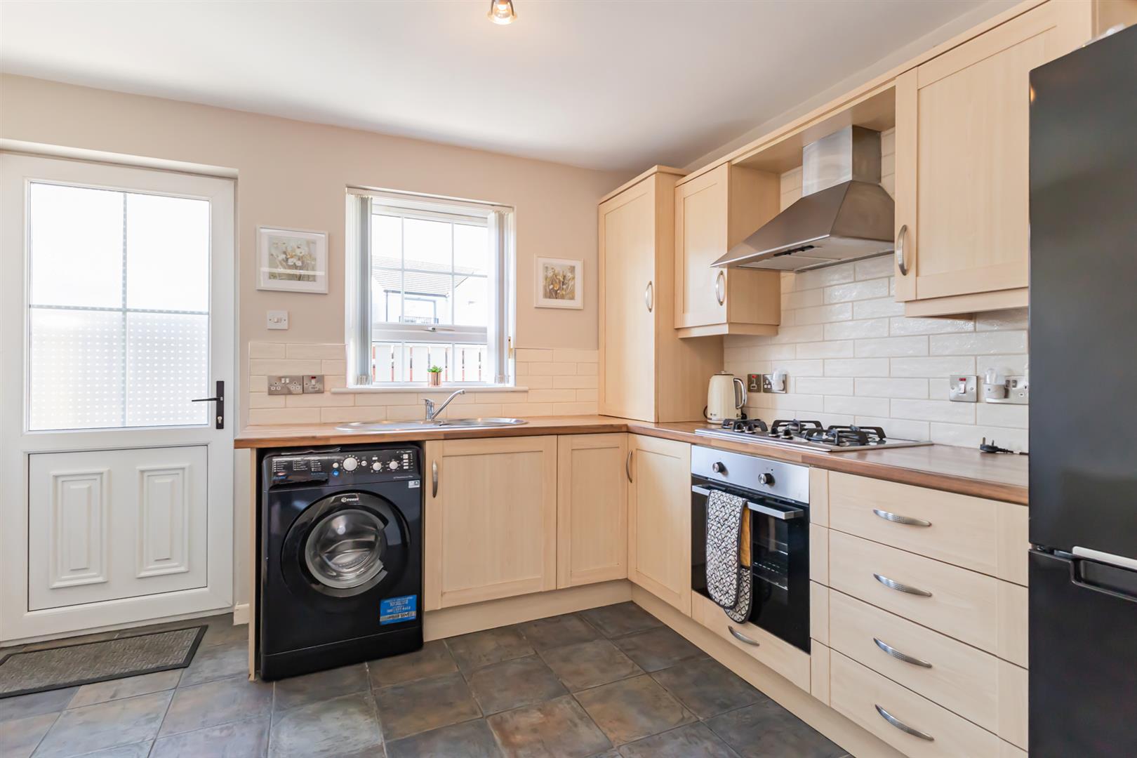 Tiled floor, part tiled walls, outlook to rear garden, range of low and high level units with wood effect work surface, space for washing machine, space for fridge / freezer, concealed Baxi boiler, Whirlpool integrated electric oven / grill, Whirlpool four ring gas hob, extractor fan, uPVC door to rear garden