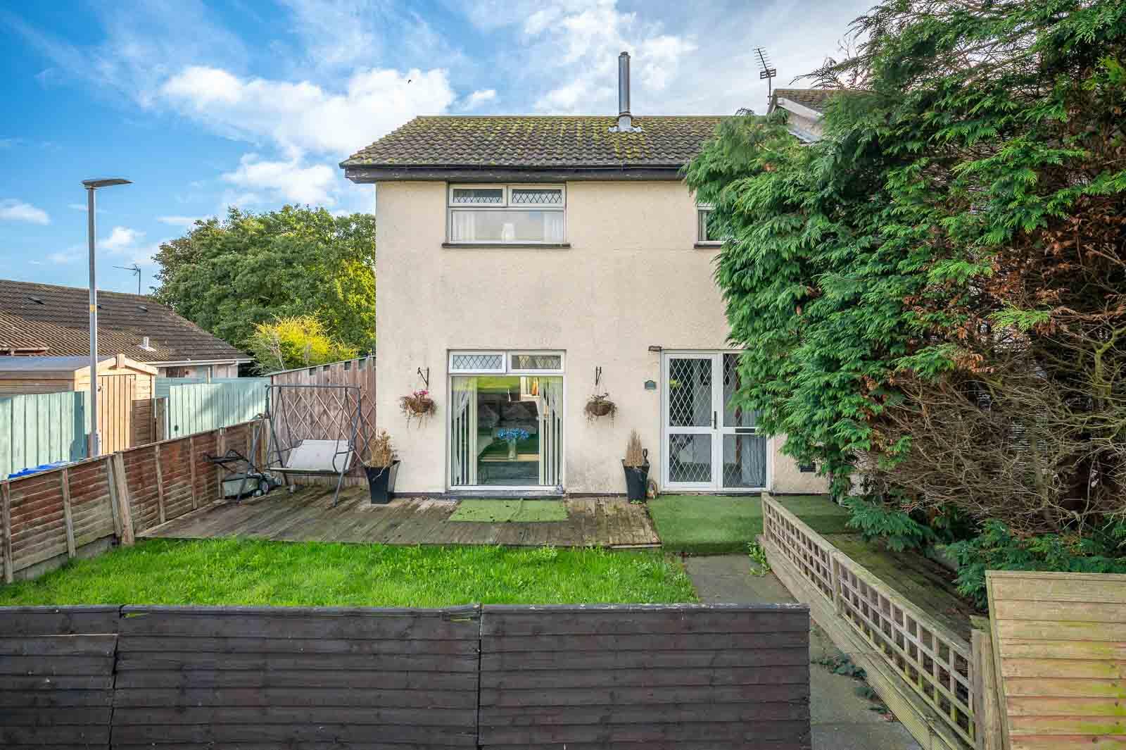 Communal parking to the front, front garden in lawns, timber decked terrace, fully enclosed rear and side garden with extensive paved terrace areas, artificial grass, uPVC oil tank, oil fired boiler.