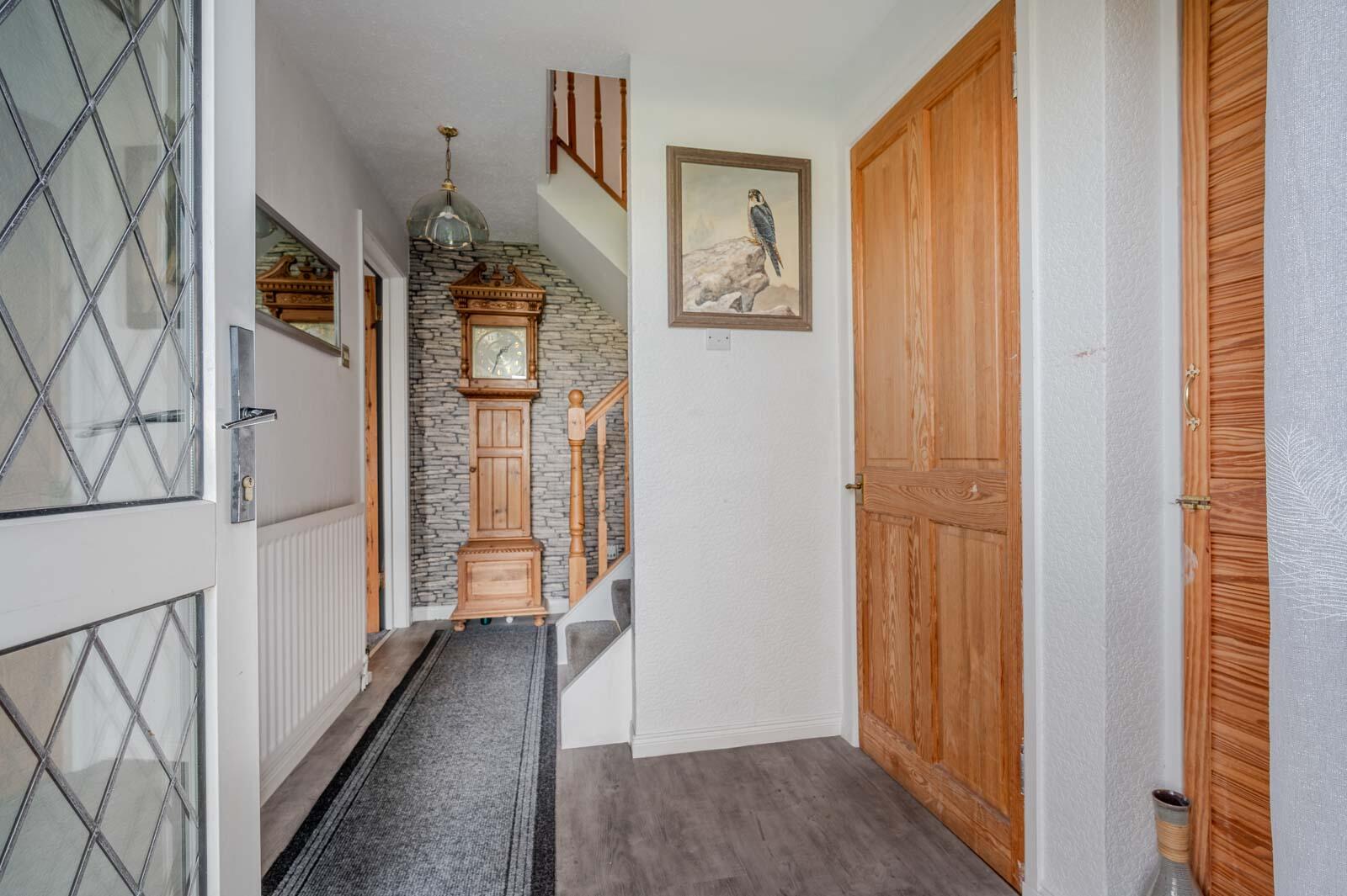 uPVC double glazed front door with uPVC double glazed side panel to reception hall.