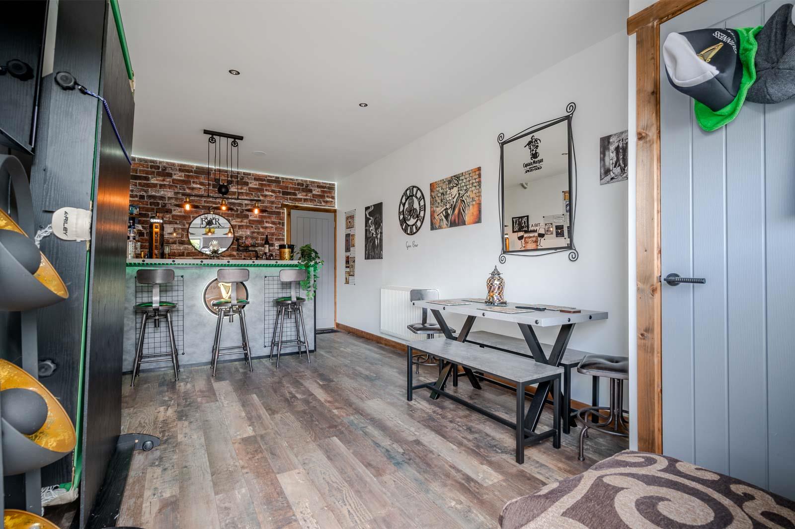 Outside does not disappoint either. There is a front garden in lawns, tarmac driveway with parking and fully enclosed rear garden with extensive timber decked terrace and westerly aspect making it ideal for outdoor entertaining or enjoying the sun. Other benefits include Phoenix Gas heating, uPVC double glazed windows, downstairs WC and attached garage which is currently partitioned to provide storage space and an outstanding bar with entertaining area.