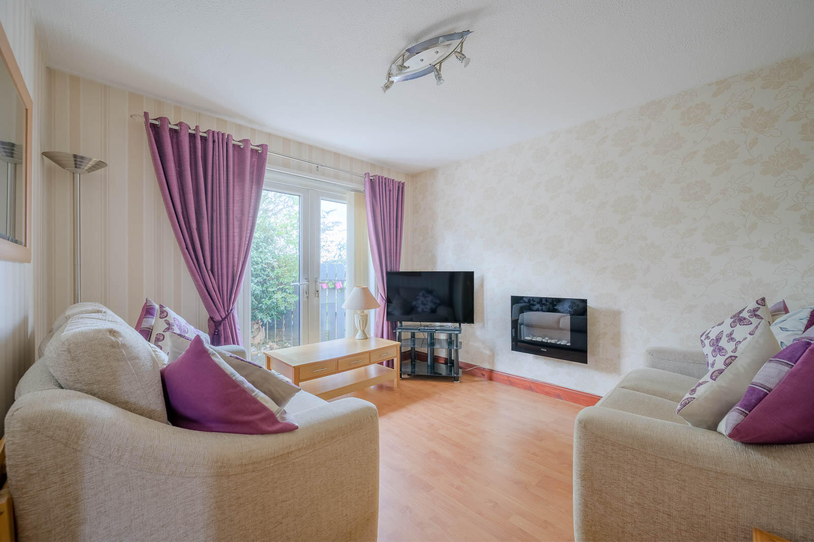 Laminate wood effect floor, uPVC double glazed French doors to rear garden.