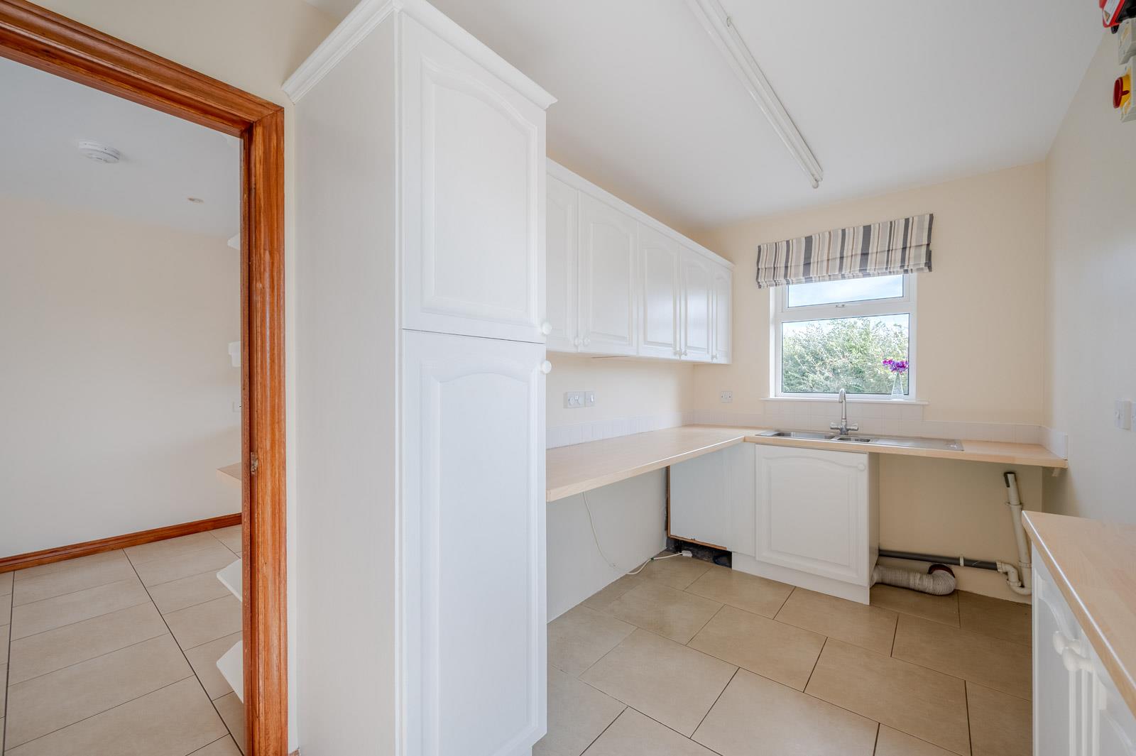 Inside, the accommodation is bright, spacious and highly flexible, featuring six well-proportioned bedrooms, several of which include built-in wardrobes. A welcoming living room with an elegant marble fireplace, open fire and charming bay window provides a perfect space to relax. The large open-plan kitchen includes a dining area and utility room, with sliding doors leading directly to the garden.