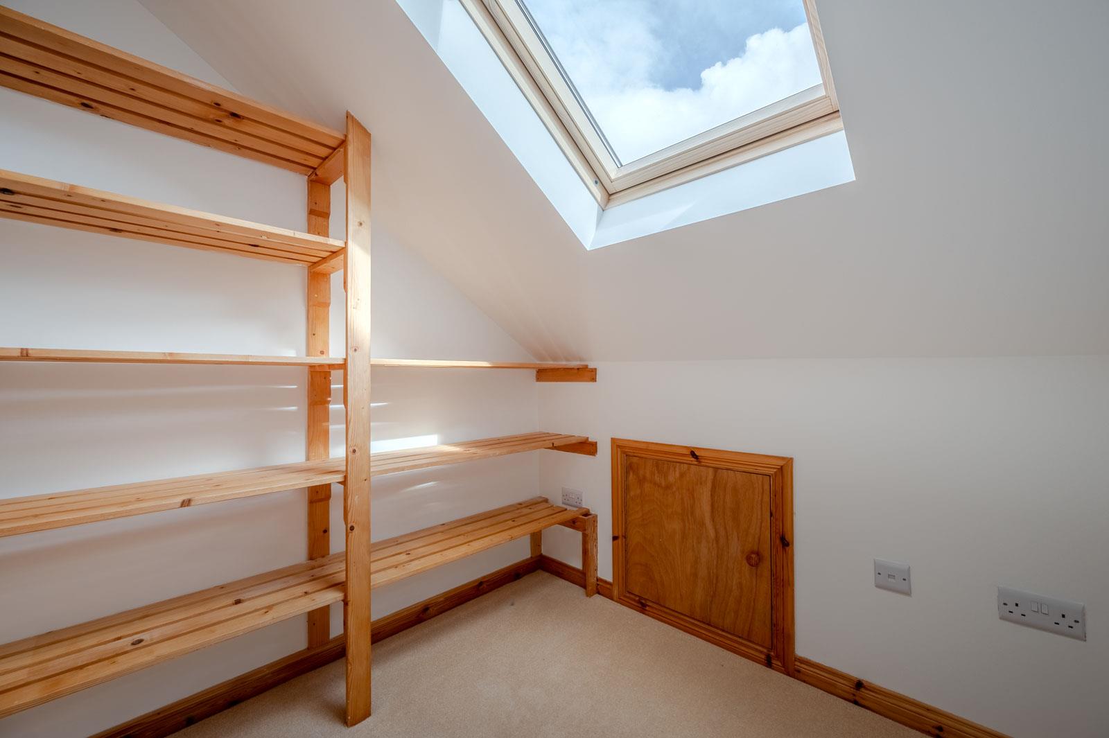 Spacious double bedroom featuring a large window that fills the room with natural light, complemented by useful eaves storage.