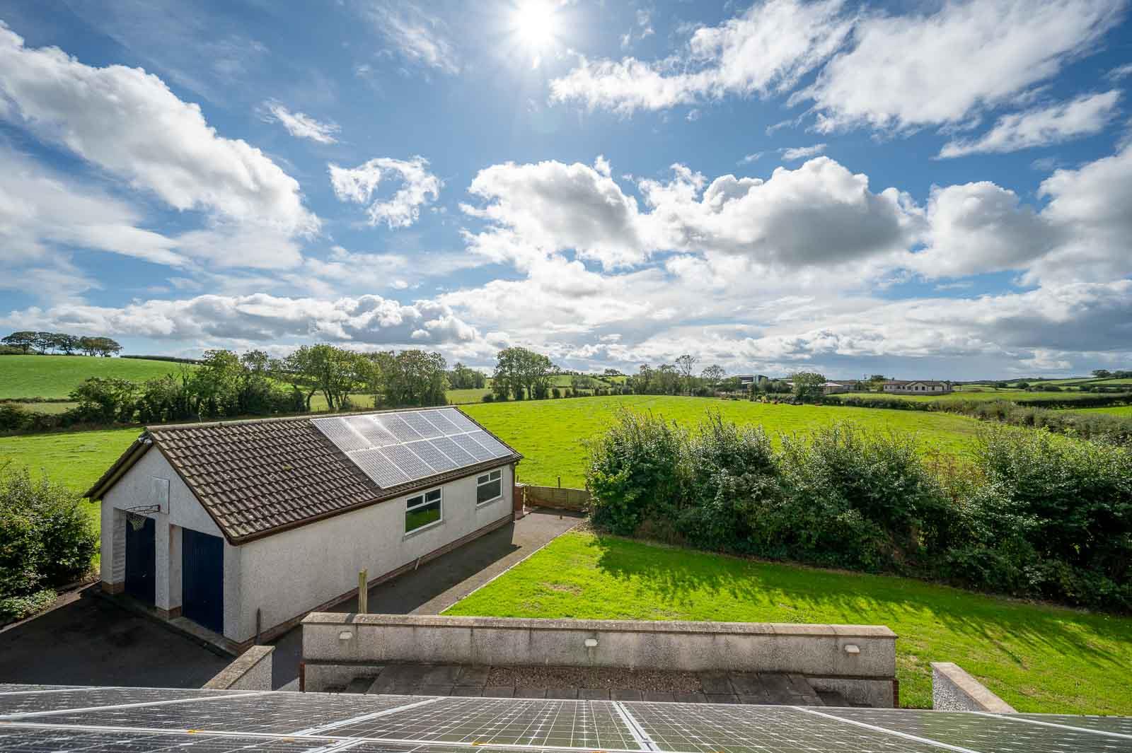 The property is also energy efficient, with oil-fired central heating, double glazing, and solar panels fitted to both the house and garage.