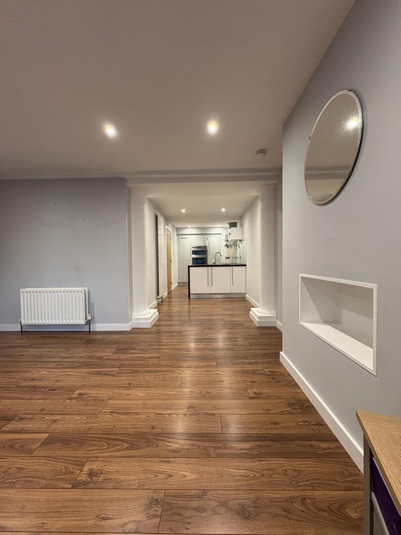 Rear door to gated car parking, Laminate wood flooring, electric controls, access to utility cupboard - plumbed for washing machine / tumble dryer and shelved for storage, access to WC, access to cloak area