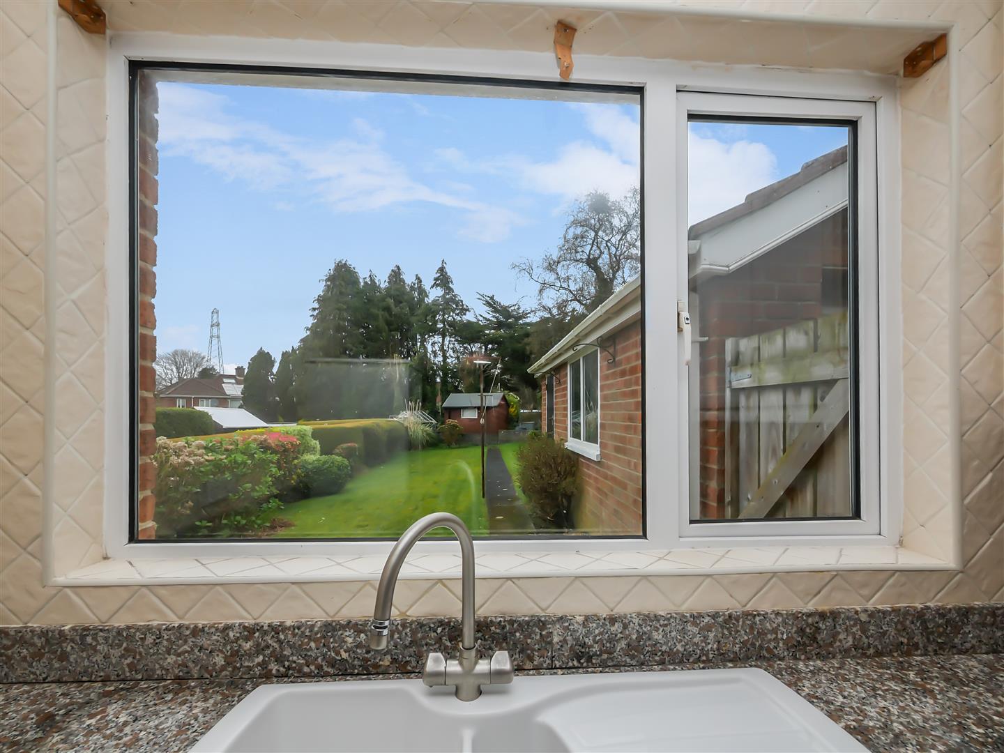 Garden to the front laid in lawn, range of plants, trees and shrubs.