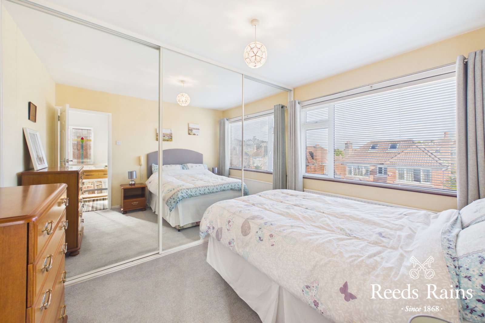 Wall to wall range of built in robes with mirrored sliding doors.