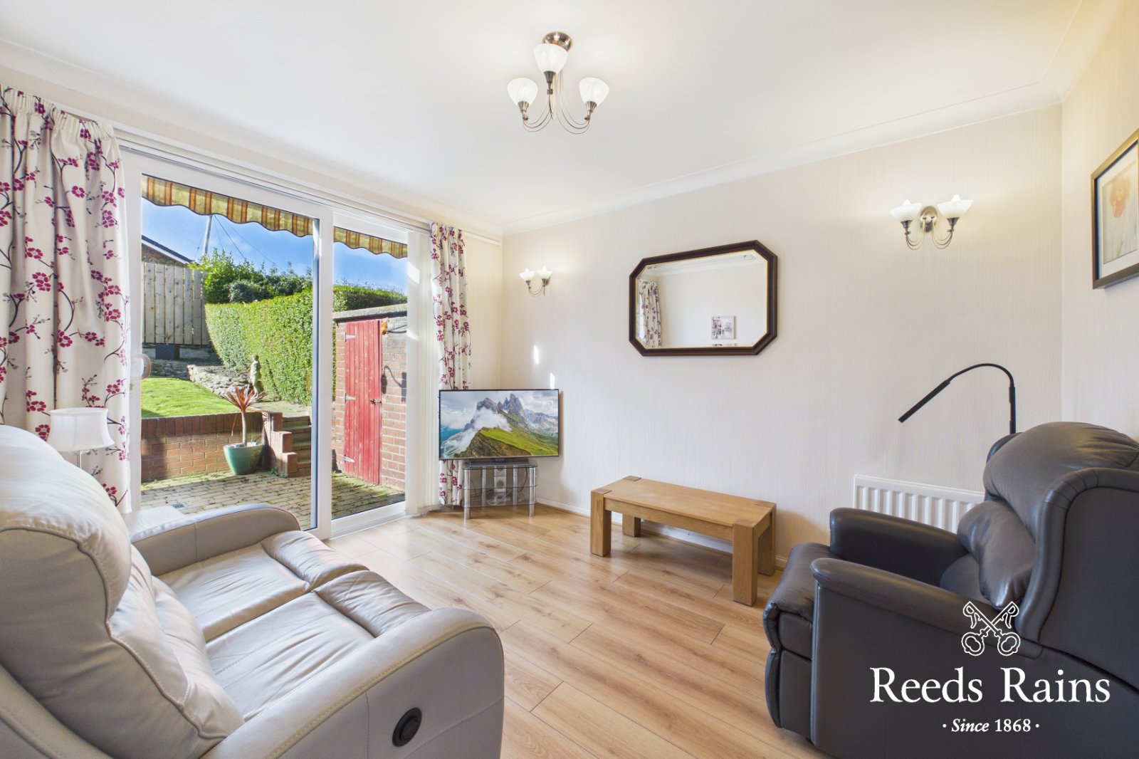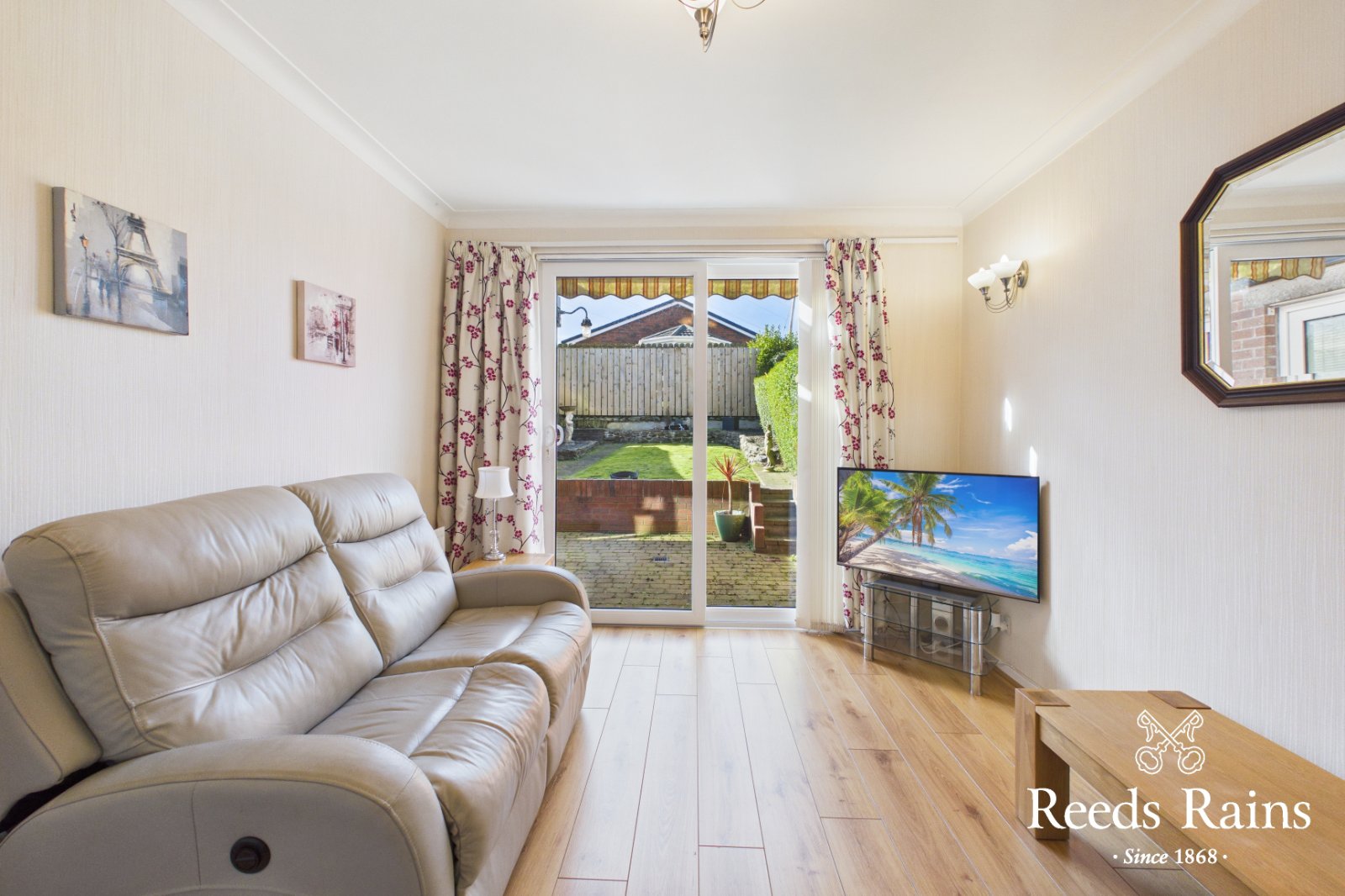 Sliding patio door to garden. Feature wooden flooring. Cornice work.