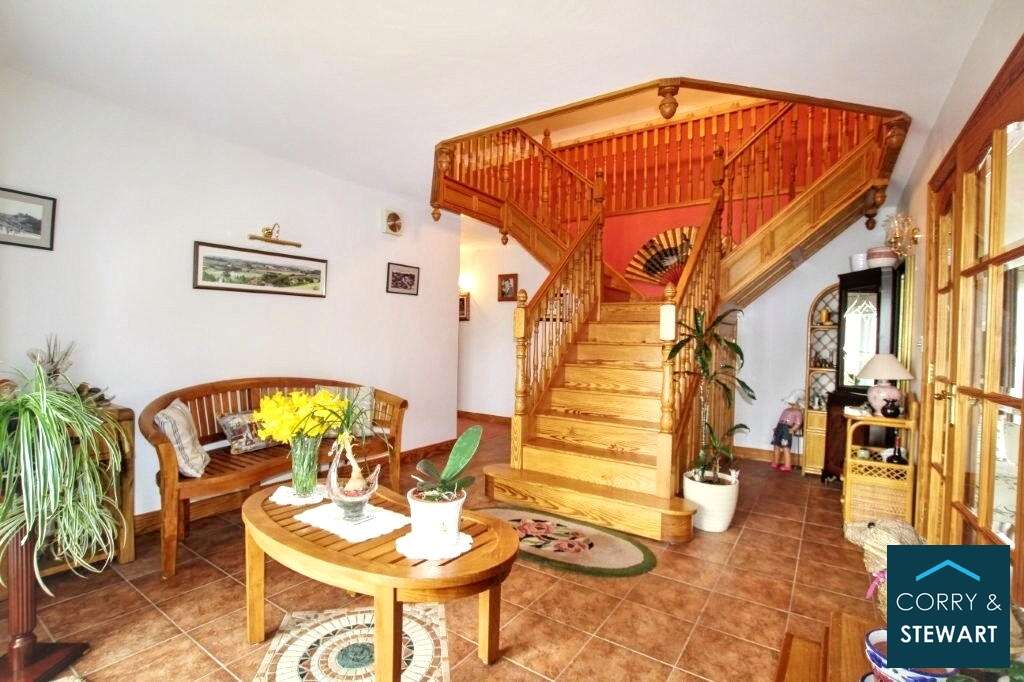 This delightful 3/4 bedroom chalet bungalow with garages is located on a very large landscaped site within close proximity to Newtownstewart Village and all local amenities. It is convenient to both primary / secondary schools, churches, shops, leisure facilities, play park, hospital / health centre, bus routes, scenic routes and golf course. The property also has panoramic views of the loccal countryside.