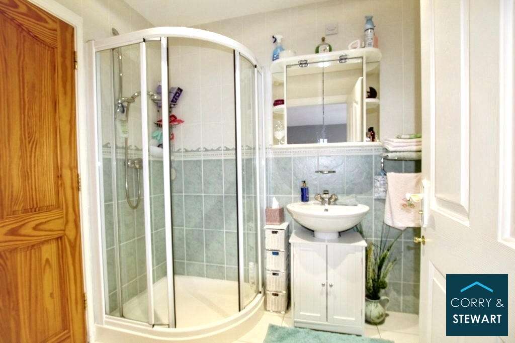 8’07” (Longest Point) x 5’09” (Widest Point) Fully Tiled Walls. Tiled Flooring. Toilet And Wash Hand Basin. Power Shower. Recessed Lighting.