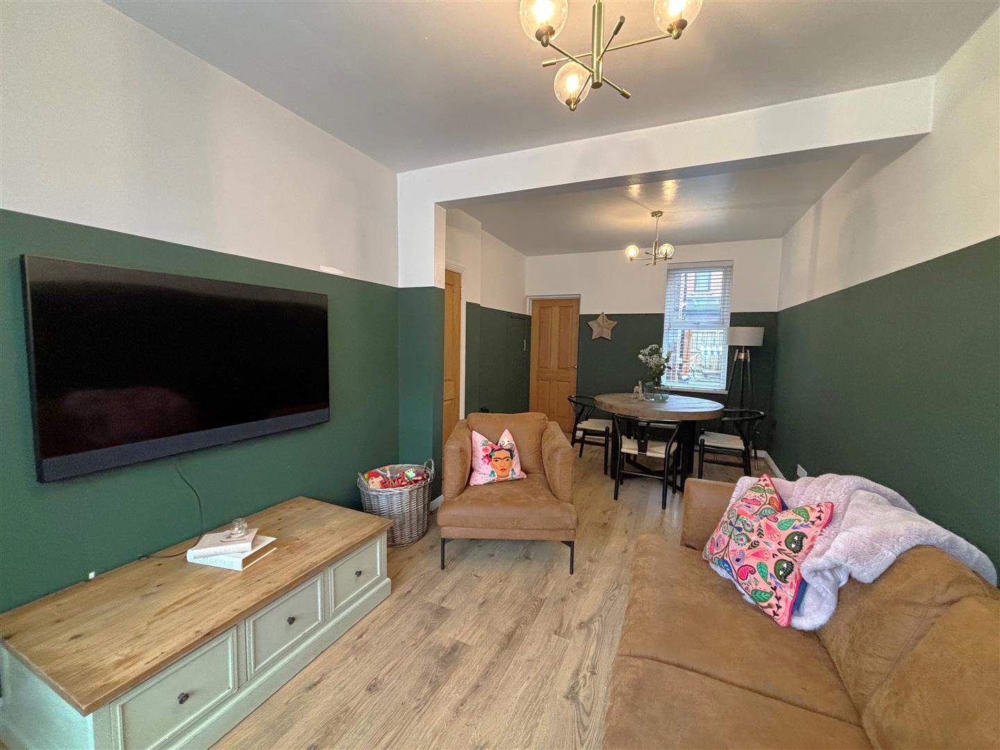 Into bay, attractive antique cast iron fireplace, wood laminate floor, double panelled radiator.