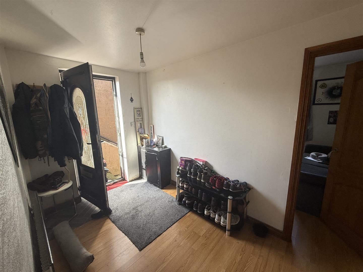 Hardwood entrance door, wood laminate floor, panelled radiator.