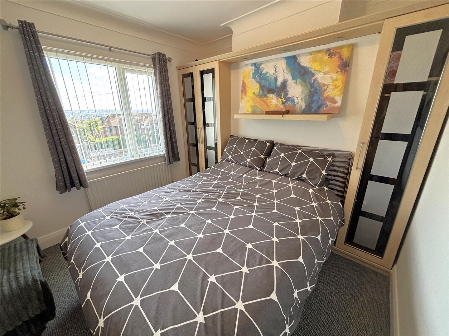 Panelled radiator, built-in mirror sliding robes.