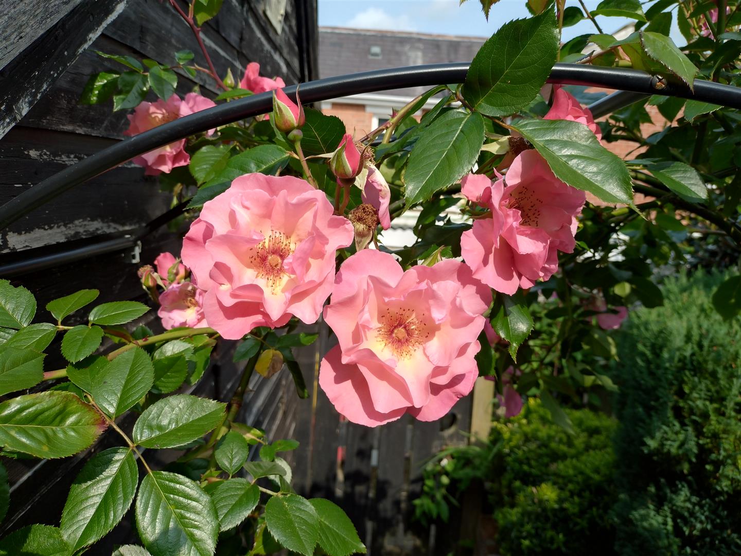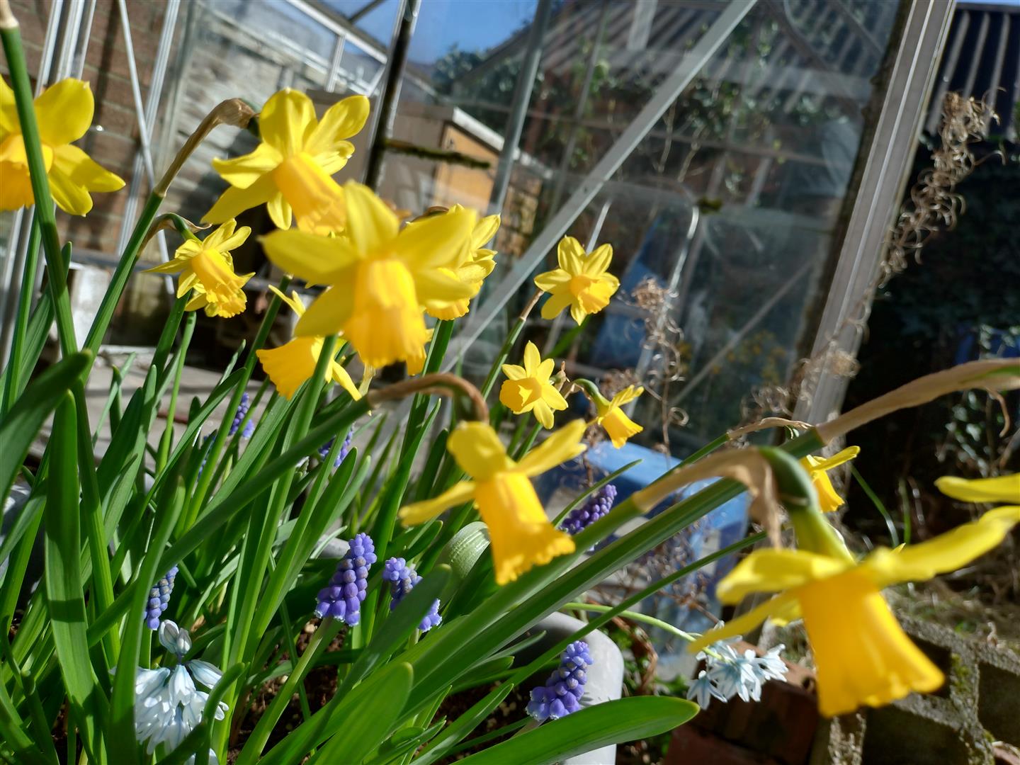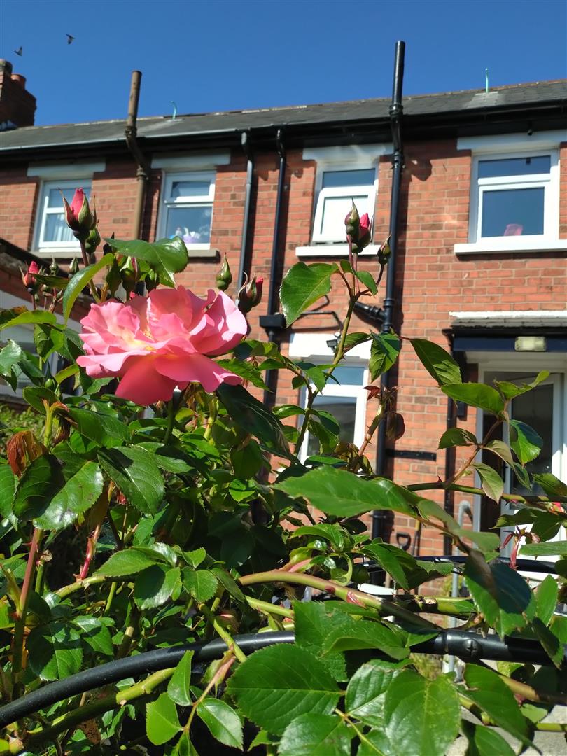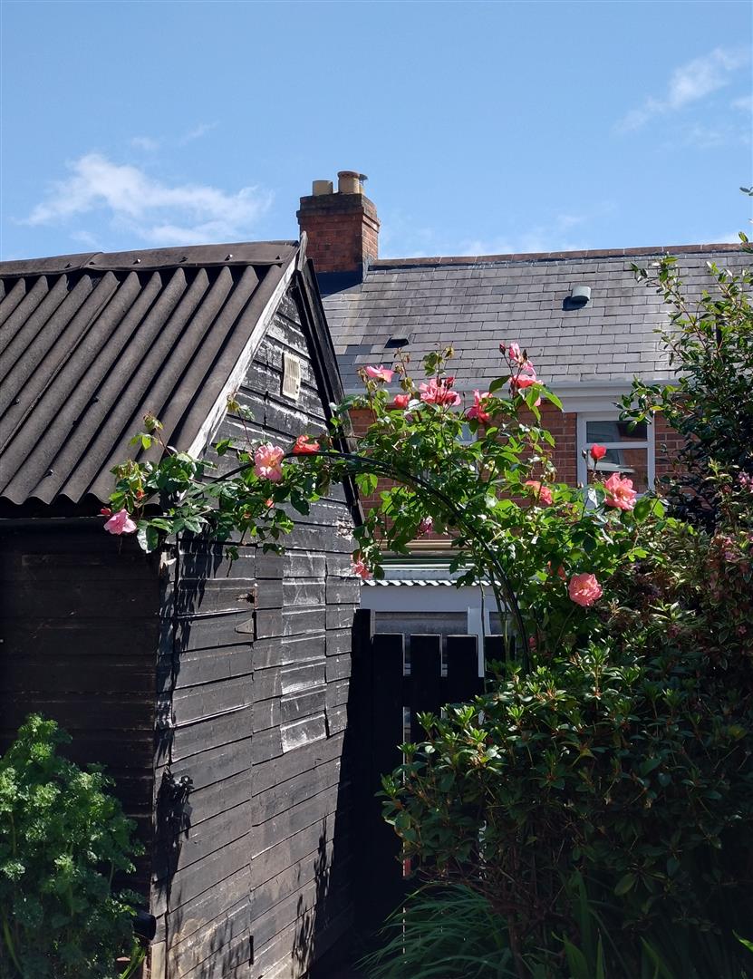 Gardens front and rear in patio and flower beds with mature shrubs. green house, large garden shed, outside light and tap, boiler house, gas boiler.