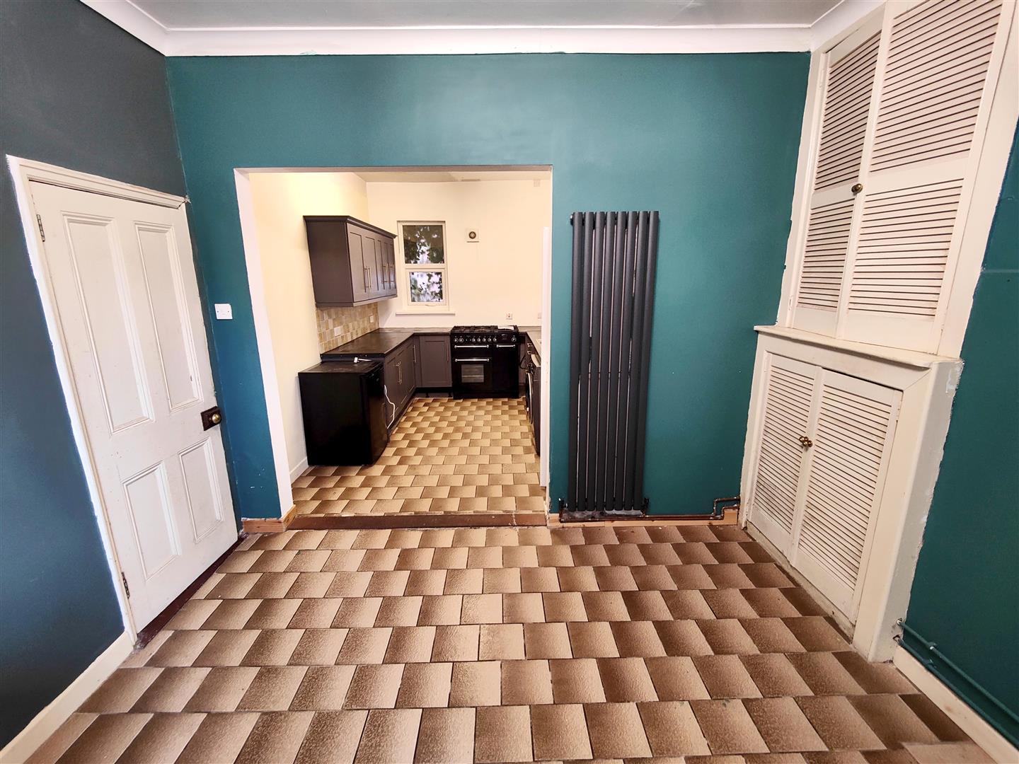 Panelled radiator, built-in robe, with cupboard.