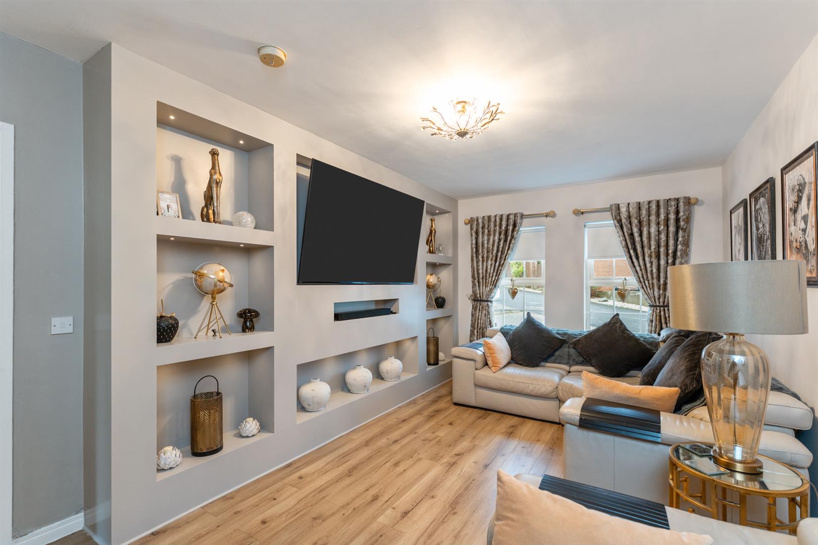 Media wall, double panelled radiator.