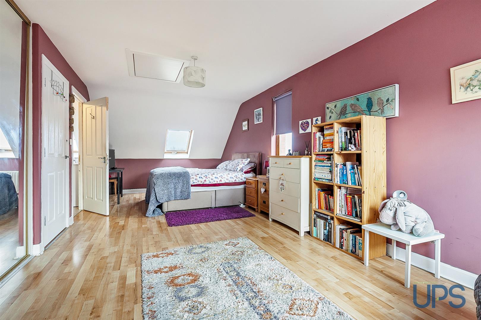 At widest, built-in mirror slider robes, twin velux roof lights, access to roof space, 2 panelled radiators.