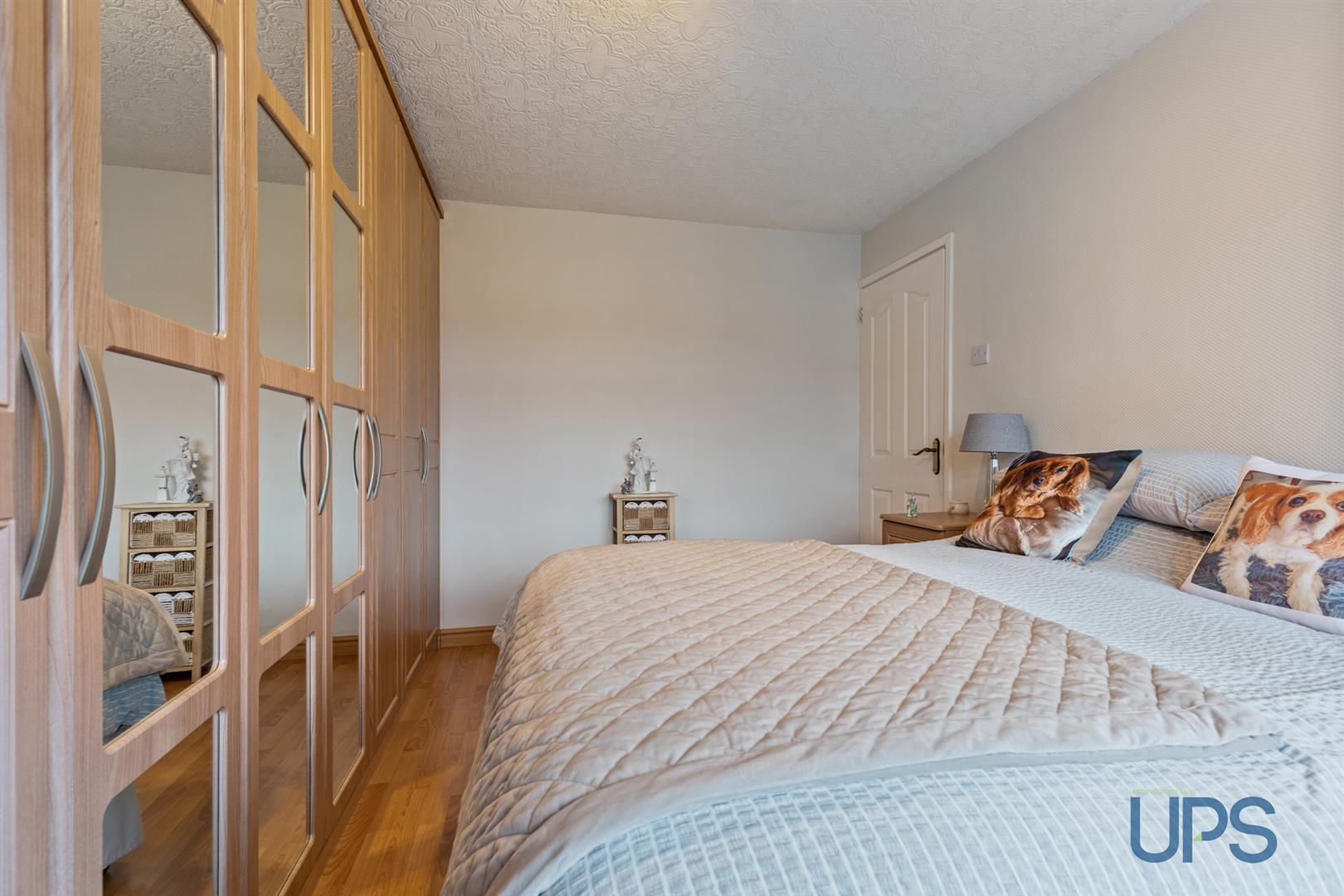 Wood laminate floor, full width built-in robes, panelled radiator.