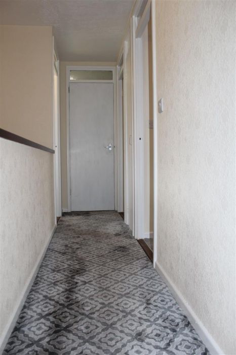 A carpeted landing leading to..