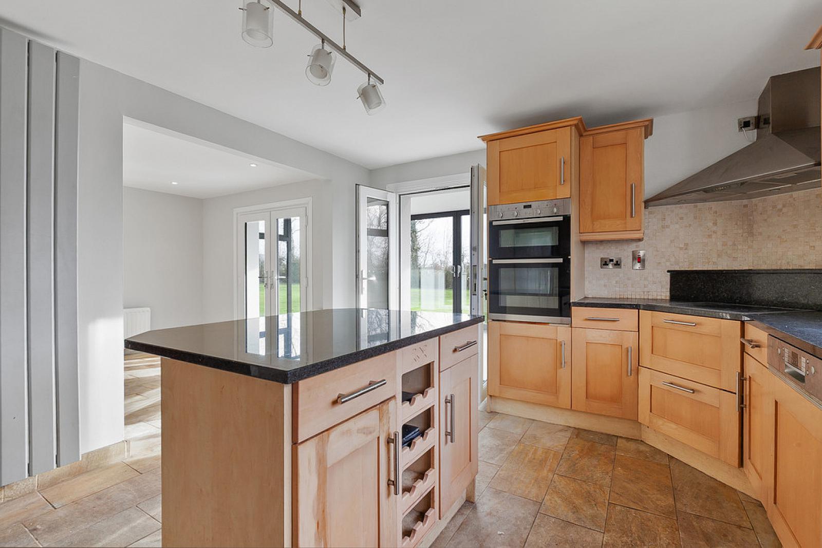 KITCHEN 11' 11" x 14' 11" (3.64m x 4.56m) Range of fitted high and low level units, granite work surfaces with matching upstand, integrated four ring hob, integrated double oven, double drainer stainless steel sink unit with Quooker tap, integrated Bosch dishwasher, integrated microwave, island unit with granite work surfaces and matching splash back, stainless steel extractor fan, feature upright radiator.
