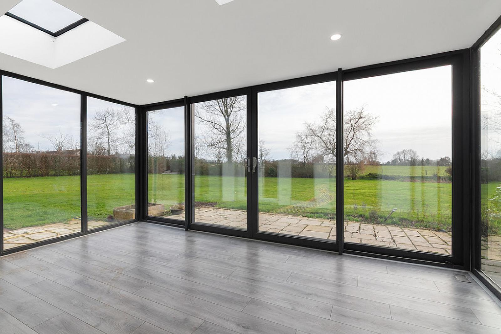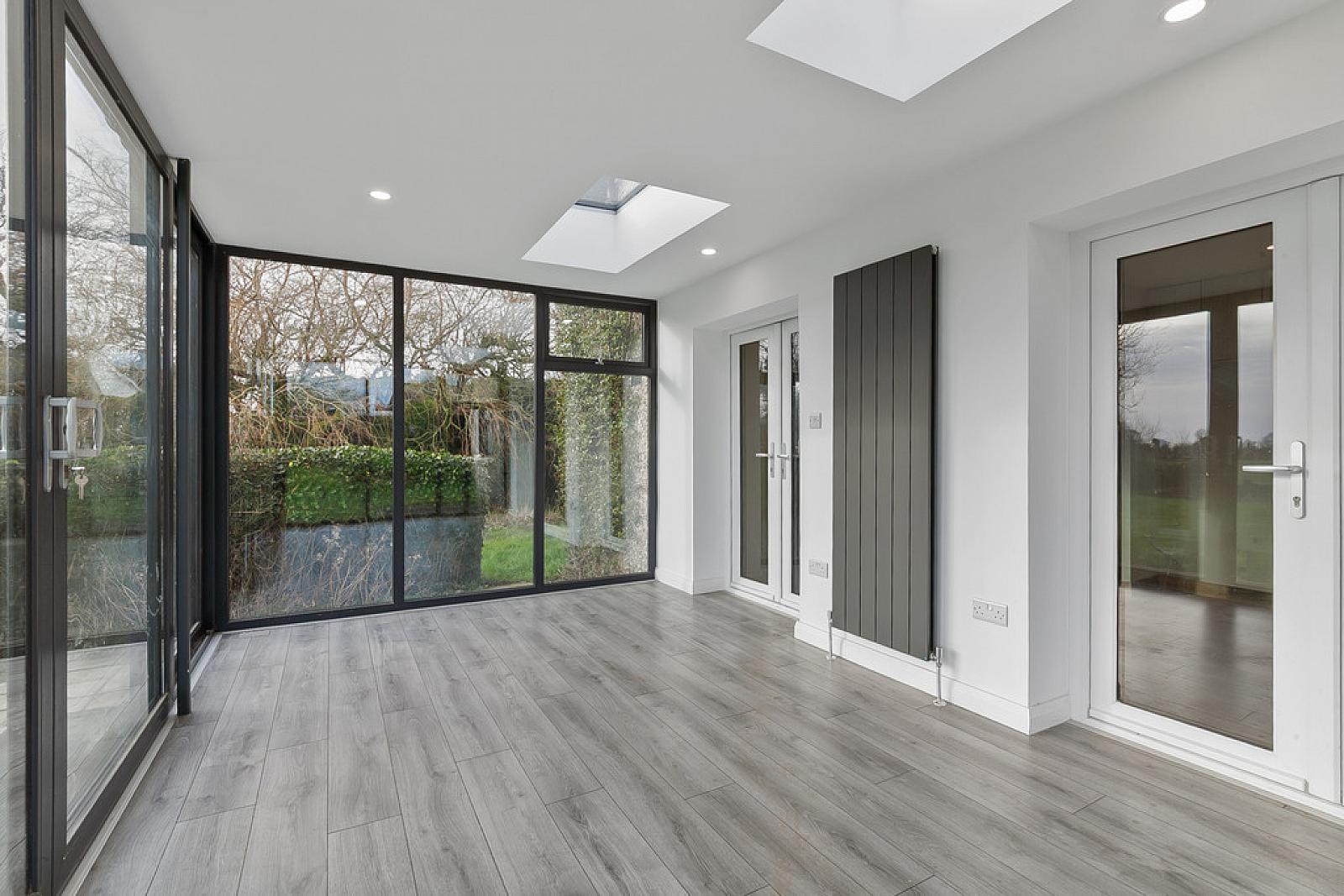 SUN ROOM (SOUTH FACING) 16' 2" x 9' 5" (4.93m x 2.88m) Engineered wood strip flooring, sliding patio doors to extensive rear garden, recessed low voltage spotlights.