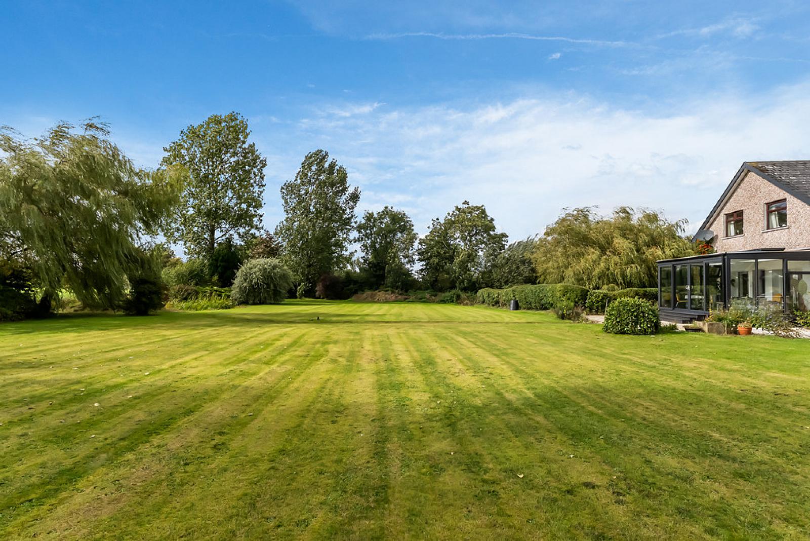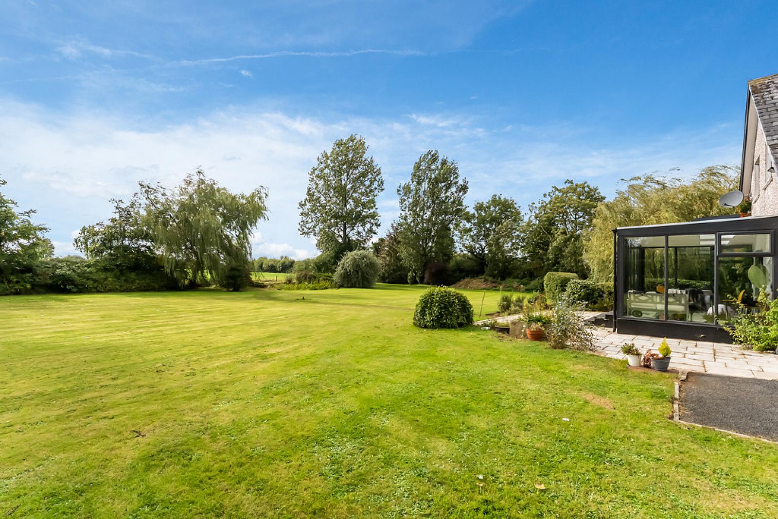 The landscaped gardens extend to approximately 1.05 acres, featuring mature planted boundaries, established trees and shrubs, a pond, expansive lawns, and an extensive tarmac driveway providing ample parking.